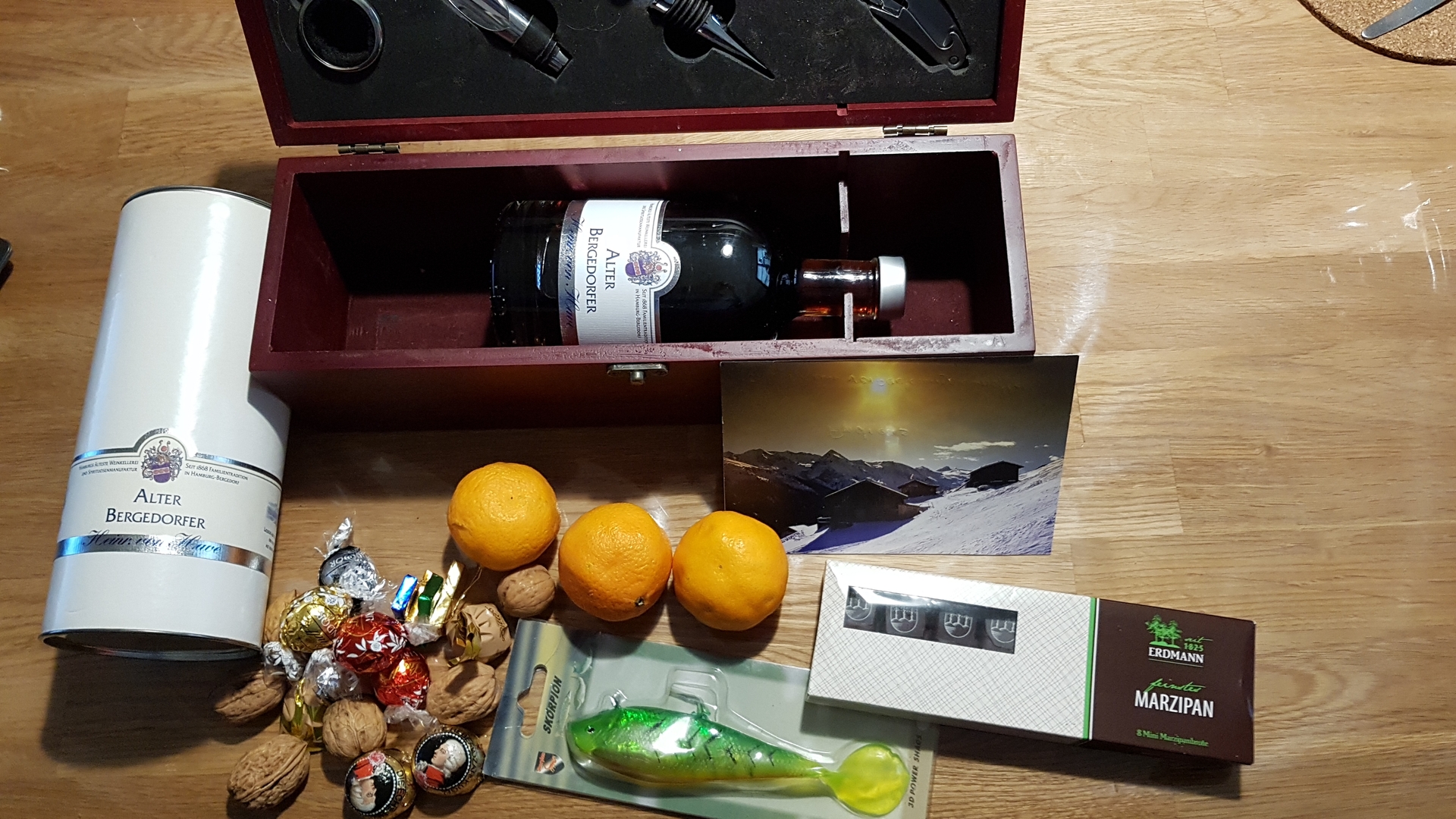 Süße Leckereien, aber auch nützliches zum Angeln darf ich jetzt mein nennen.
