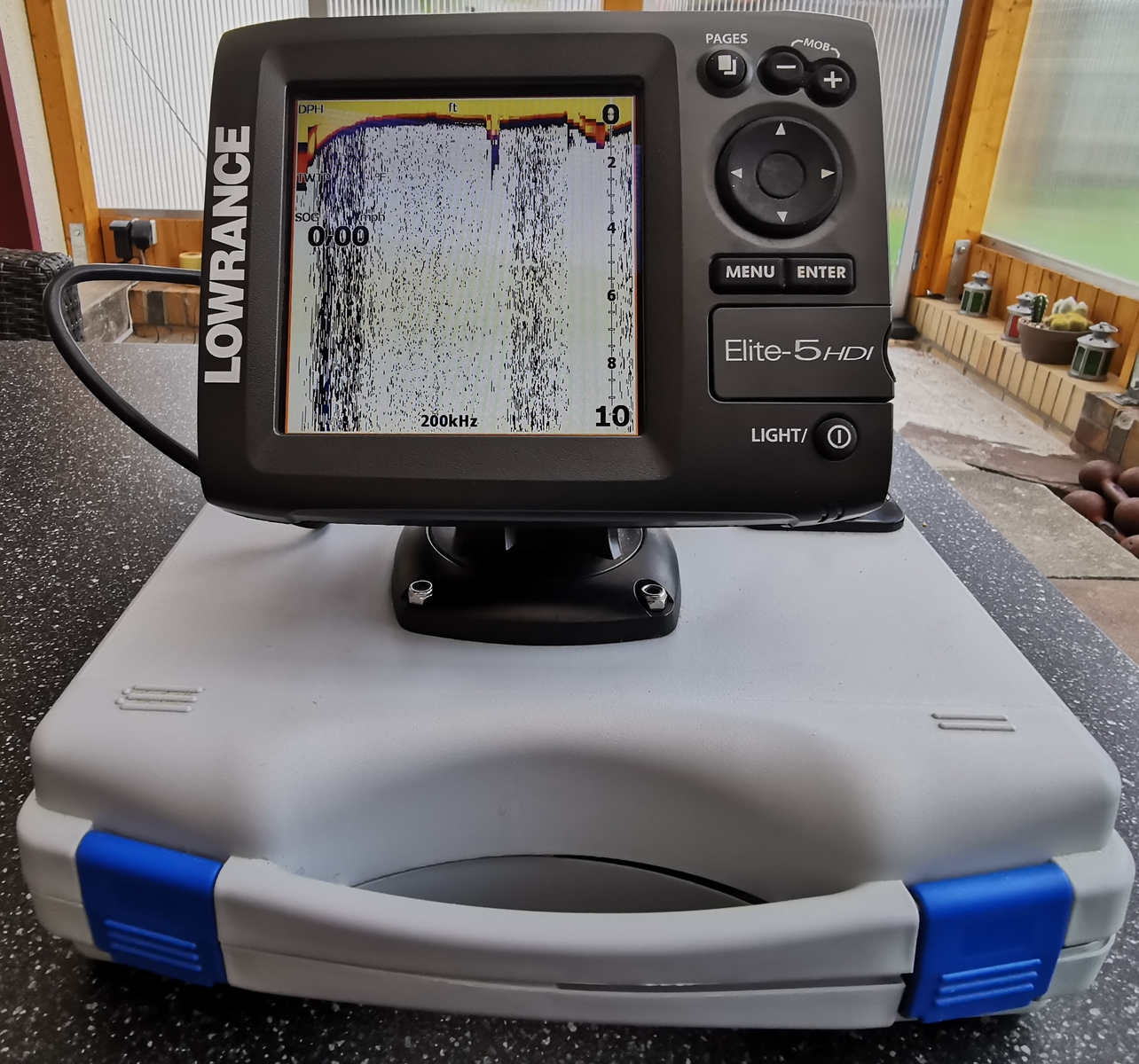 Das Gerät habe ich auf eine portable Einheit umgebaut. Ich verkaufe es komplett mit Koffer auf dem sich noch eine 2. wasserdichte Steckdose( Zigarettenanzünderformat), die ich zeitweise für mein Tablet nutzte, befindet. Weiterhin sind zwei Akku im Koffer, Manual, Geber mit 83/200, 455/800kHz und die Echolottasche (ThinkBig) sind auch dabei, ebenso ein Ladeggerät. Natürlich auch die komplette Edelstahl-Geberstange von Schlageter.