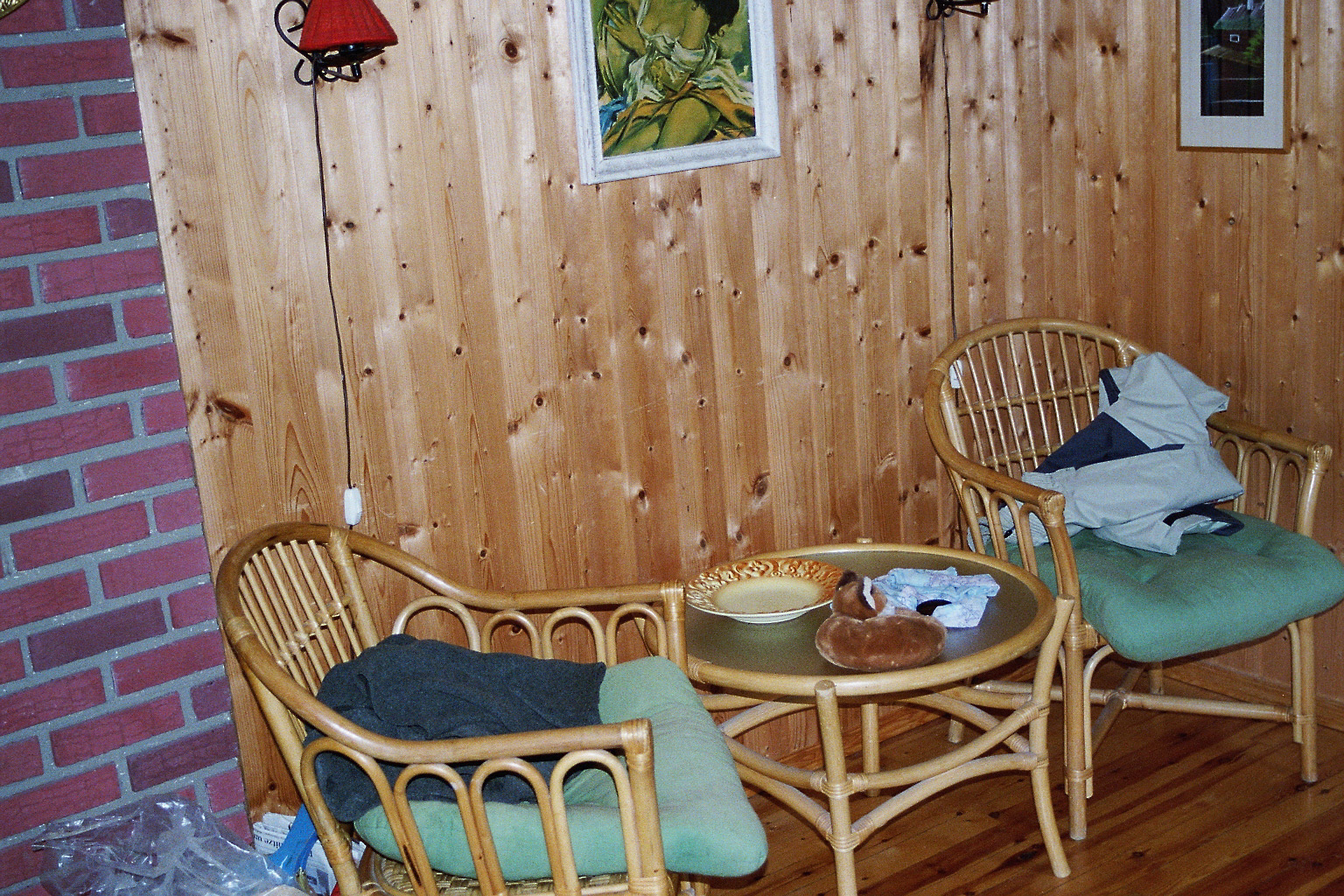 Die Straße wurde immer schmaler und endete schließlich vor zwei recht gut aussehenden Hütten. Doch statt vor einer dieser Hütten zu halten ging es kurz vorher rechts ab in einen Wald und Wiesenweg. Oder besser gesagt. Eine Fahrspur durch den Wald :eek: :eek: :eek:. Der Firmen-Benz meiner Frau jubelte sofort los und alle Warnleuchten strahlten in ihrem grellsten rot. Als ob er uns zurufen würde: „ICH BIN KEIN JEEP!!!“. Dieses Verhalten legte er auch in den nächsten Tagen nicht ab. Dafür wurde der Weg nach jedem Regenguss schlechter. Als wir an der Hütte ankamen waren wir schlicht sprachlos. Denn die Hütten an denen wir eben erst vorbei gekommen waren sahen deutlich besser aus als das Gebäude das dort vor uns auf einem Felsen stand :eek: . Als wir aber eintraten wurden wir doch sehr überrascht. So sauber und gemütlich hätten wir uns das innere nicht vorgestellt. Abgesehen von den Teppichen sah der Innenraum der Hütte aus wie eben erst gebaut :baby: .