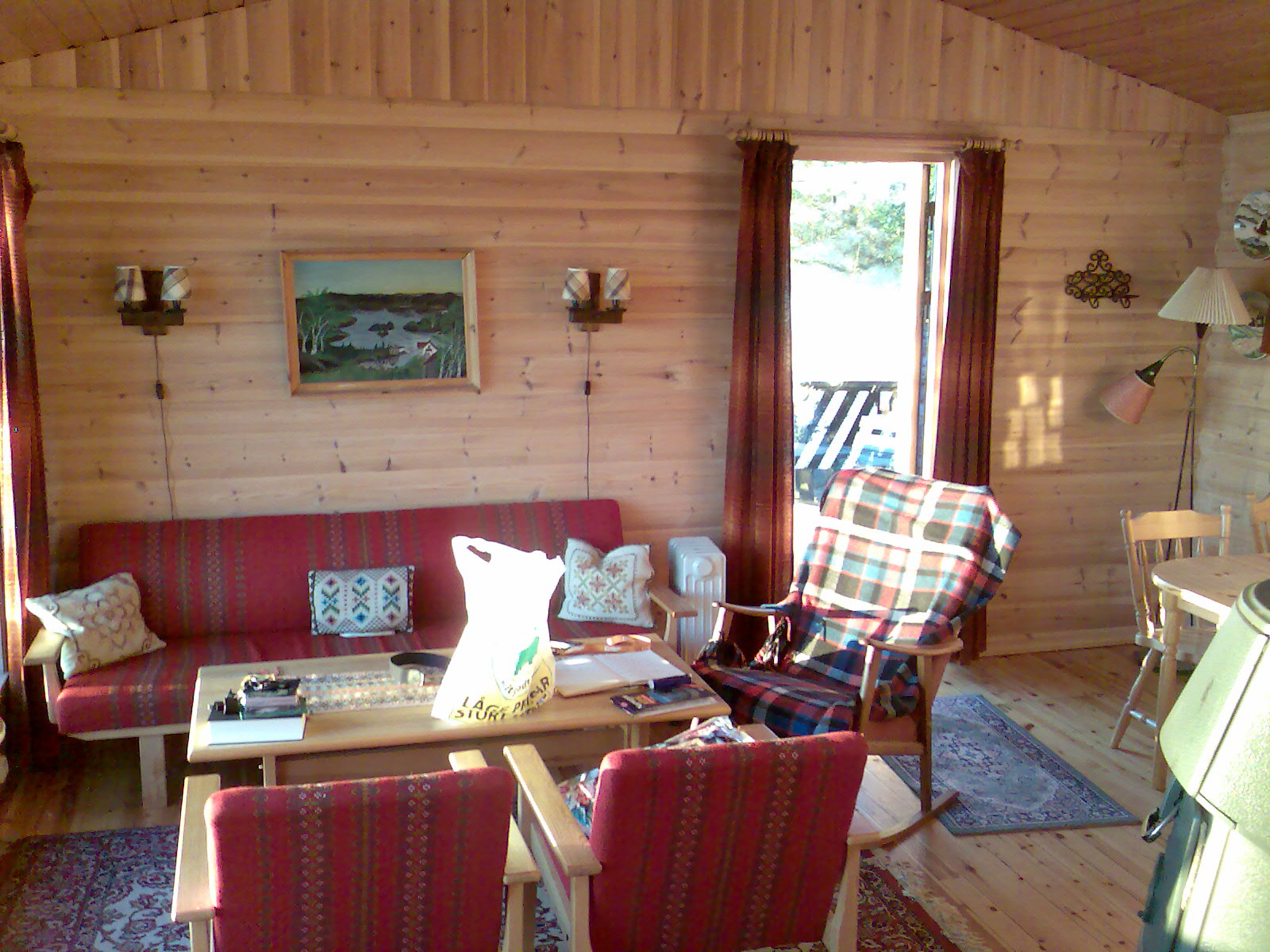 Unser Vermieter Rolf Isaksen wollte uns vom Ortsschild „Grov“ abholen weil man sonst nicht zu der Hütte hinfinden würde. Also rief Snowbird die Handynummer an die er vom Reiseveranstalter bekommen hatte an. Und da war das zweite Problem. Eine freundliche Stimme teilte mit, dass diese Nummer nicht vergeben ist. Zufällig kam ein PKW mit einer jungen Frau just in diesem Augenblick an uns vorbei. Etwa 10 Minuten später kam derselbe Wagen wieder zurück. Nun mit einem Mann am Steuer. Unserem Vermieter. Und schon hatten wir das dritte Problem. Die sprachliche Verständigung. Er machte uns klar dass er etwas Deutsch verstehen aber noch weniger sprechen könnte, in Englisch war er auch nicht so sicher. So hatten wir einen gesunden, etwas lustigen Mix aus Englisch und Norwegisch mit einigen Brocken Deutsch zu bewältigen. Wir bekamen auch eine neue Handynummer und die Festnetznummer von ihm. Dann brachte er uns zu unserer Hütte.