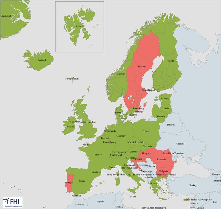 Alle Regionen in Finnland, Island, Grönland, den Färöern und Dänemark erfüllen derzeit die norwegischen Kriterien.