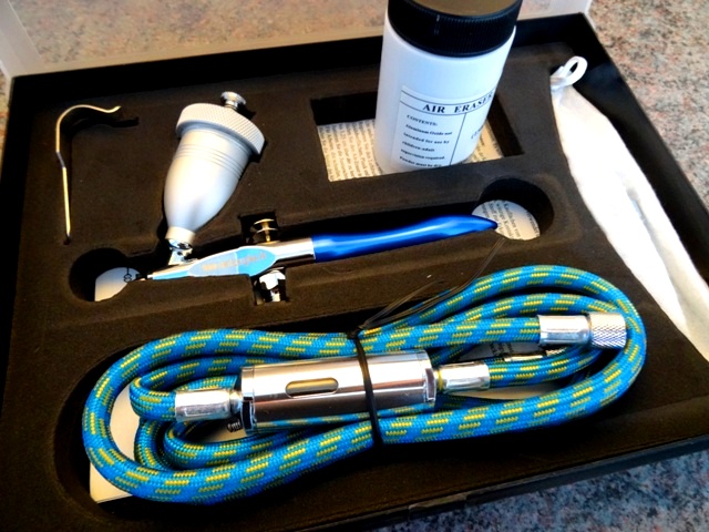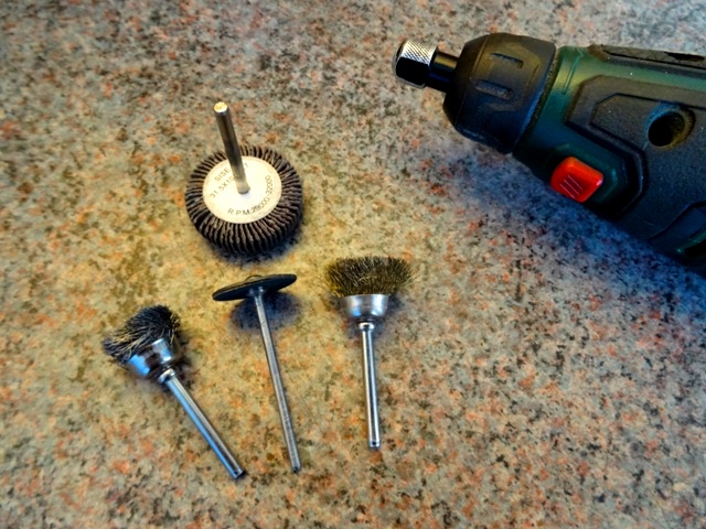 dann abstrahlen (feinstes Strahlgut) mit dem Air-Eraser....