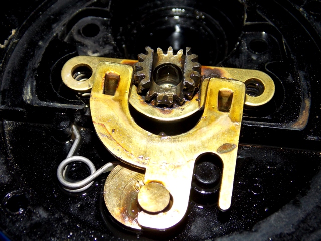 darunter eine leicht gewölbte Metallplatte mit 8 Rasterpositionen,Bremsscheiben wie man sie heute kennt sucht man vergebens....
