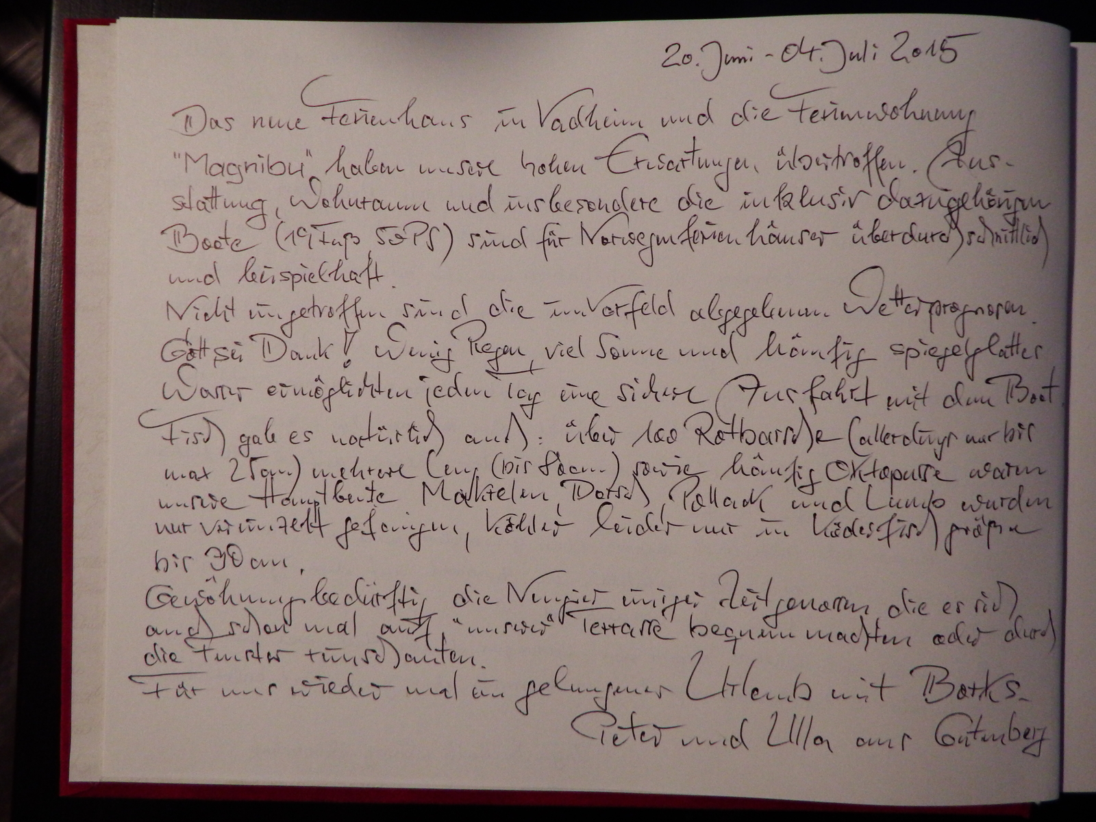 wir verbrachten im Juni 2015 in der Ferienwohnung MAGNIBU von Borks einen sehr schönen Urlaub in Vadheim.