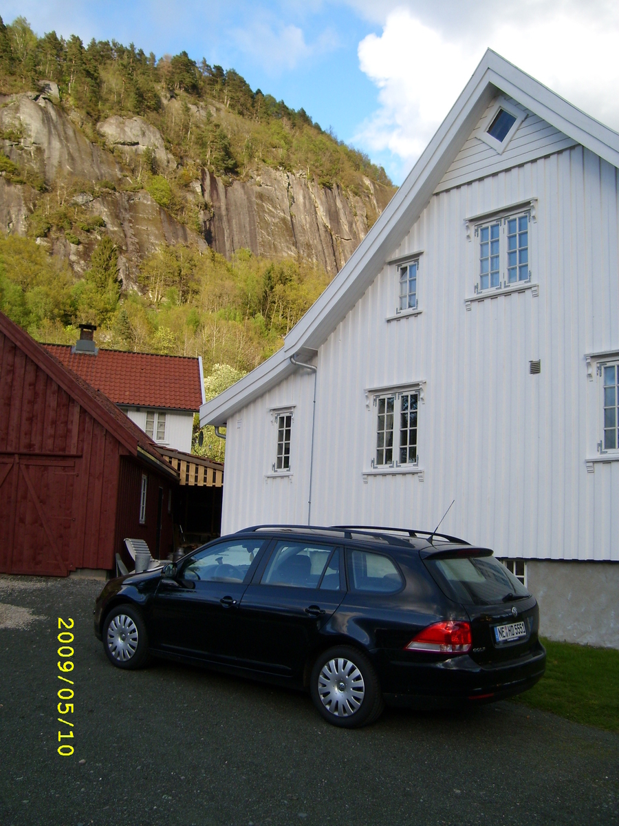 Die Anfahrt erfolgte am 09.05.09 bis Hirtshals, wo wir eine Übernachtung einlegten, am nächsten Tag ausgiebig frühstückten und dann 12:15 Uhr mit der Fähre nach Kristiansand übersetzten. Die Fähre hatte ne ¼ Stunde Verspätung, da die Überfahrt recht holprig verlief. Von der Fähre bis durch den Zoll brauchten wir schon fast eine Stunde (zum Glück wurden wir nicht rausgefischt), so dass wir dann erst 18:00 Uhr an unserem Ferienhaus Egenes von Come2Norway in Feda ankamen, wo uns unsere Vermieter schon erwarteten. Wir wurden in das Haus und Boot eingewiesen, wobei sich die Verständigung etwas schwierig erwies, da die Vermieter NUR englisch und norwegisch sprachen. Nicht, wie in der Hüttendatenbank geschrieben wurde, dass die Vermieter deutsch sprechen. Aber mit Händen und Füßen gelang es uns doch, alles von den Vermietern zu verstehen.
