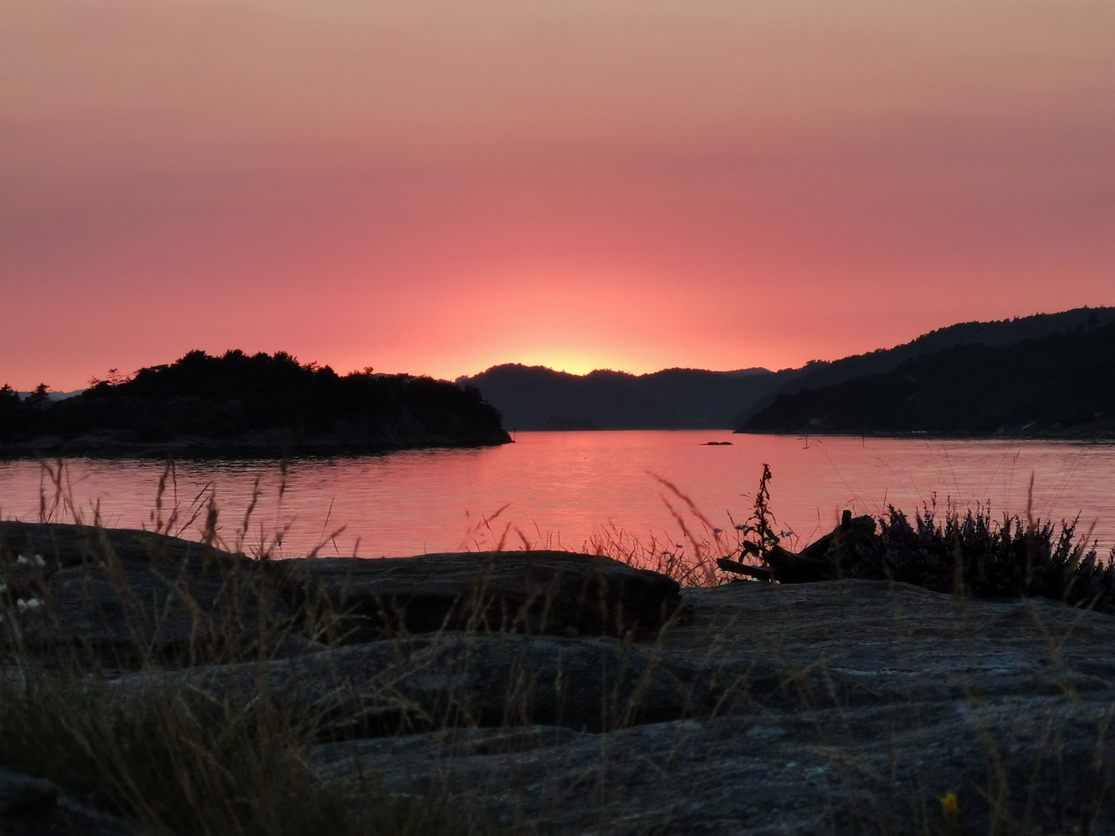 Heute an Sonntag wurden wir wieder durch einen wunderschönen Sonnenaufgang geweckt. Schön eine Tasse Kaffee dabei genossen. Um ca 9.30 Uhr ging es zum Boot. Zeitlich machten sich unsere Nachbarn zu 5.? Fertig in ihr yellow Boat zu besteigen. Sie fuhren vor uns raus und wir folgten ihnen die ersten Meter. Sie drehten ab Richtung offenes Meer. Wir beschlossen auf der Innenseite um die Insel Hille entlang zu angeln. Es ist echt traumhaft dort entlang zu fahren. An x Stellen und Tiefen versuchten wir unser Glüc k. Etliche sehr grosse Lippfische nahmen unsere Köder. Zwischendurch gab es ein paar Makrelen und kleine Mitte 40 er Dorsche. Gegen 14 Uhr waren wir wieder am Haus und versorgten die Fische. Wir genossen am Nachmittag den Ausblick und das tolle Wetter. Gegen 18 startete ich einen weiteren Ausflug und konnte wieder die bunte Palette Fisch erbeuten, ausser mein Freund der Pollack. Gegen 20.30 Uhr war dann Schluss für Heute. Morgen ist auch noch ein Tag. Am Haus hatte ich noch mit einem Norweger gequatscht, der hier wohnt. Er sagte auch das es verdammt schwer ist an grossen Fisch zu kommen. Wenn müsste man weit raus. Pollacks wären meist nur im fast dunklen zu erwischen. Hmm ich muss wohl die Taktik umstellen. Mal sehen was morgen der Tag bringt