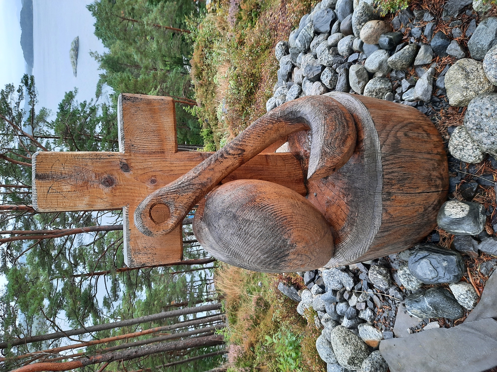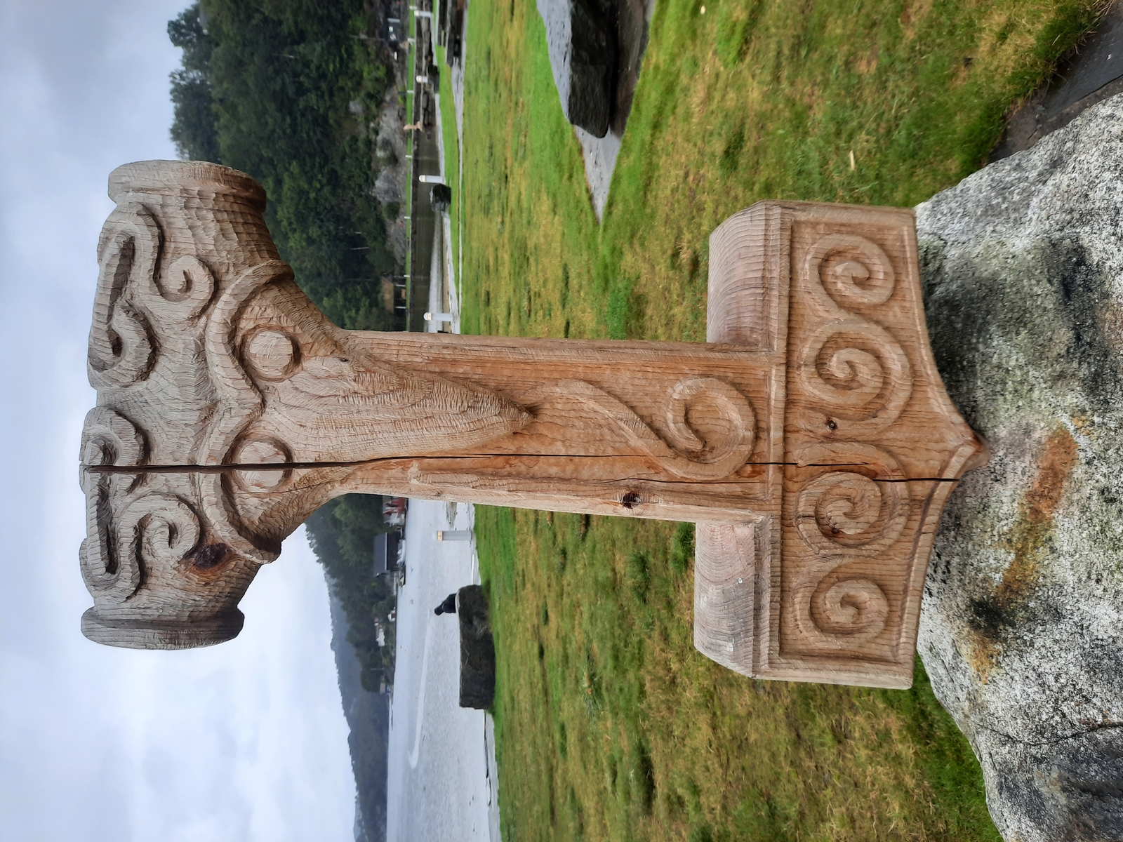 die Holzskuptur...........denke ich an Thors Hammer...liege ich richtig? -
