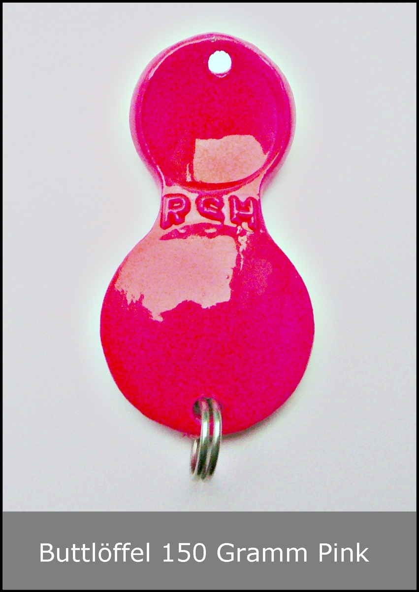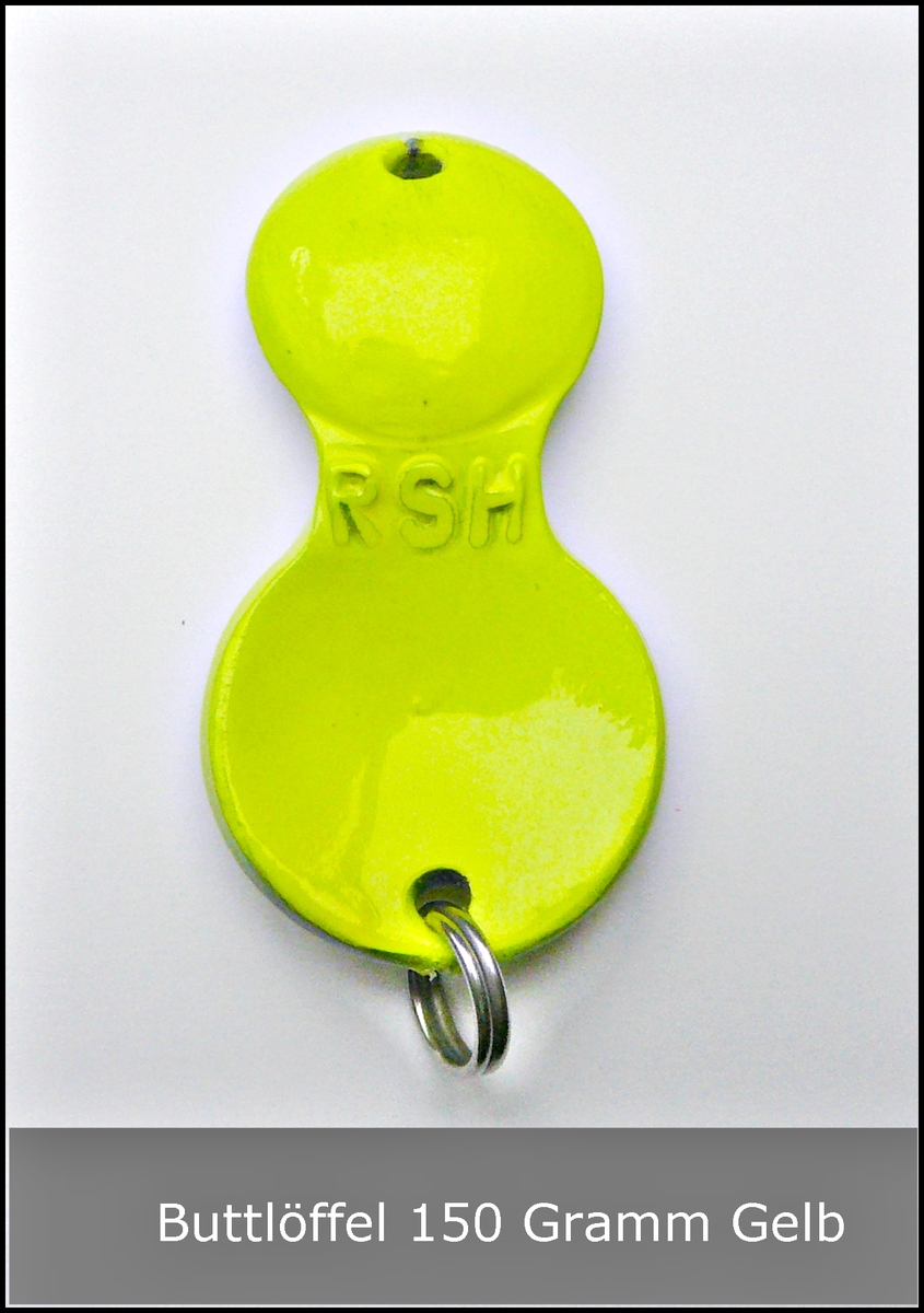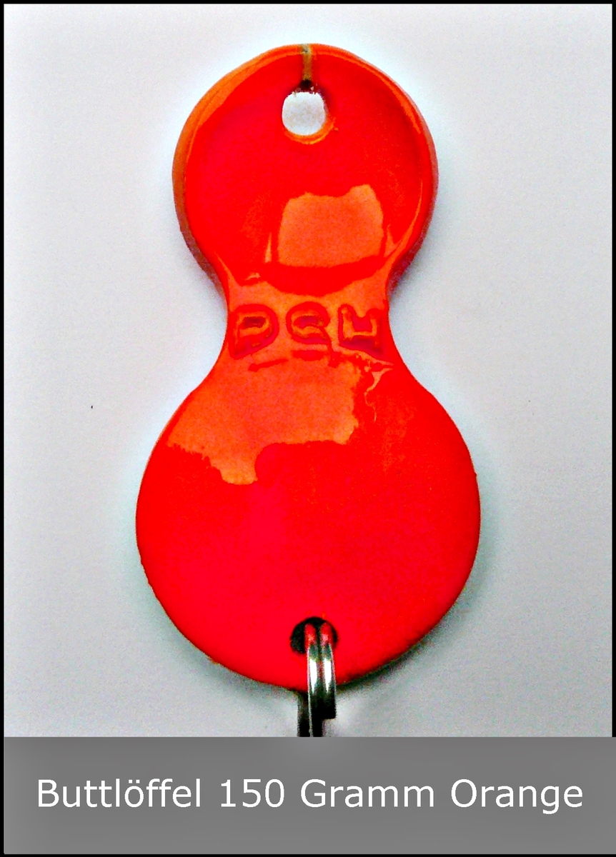 mit dem 150 Gramm Buttlöffel erweitern wir unser Sortiment und schließen die Lücke zwischen den alt Bewährten 100 Gramm und den neuen 200 Gramm Magic Spoon Buttlöffeln. Der neue 150 Gramm Buttlöffel ist ebenfalls aus eigener Entwicklung realisiert mit tatkräftiger Unterstützung durch Werner Bült Firma reelex. In den Farben Neon Gelb, Neon Orange und Neon Pink oder auch in Natur belassen.