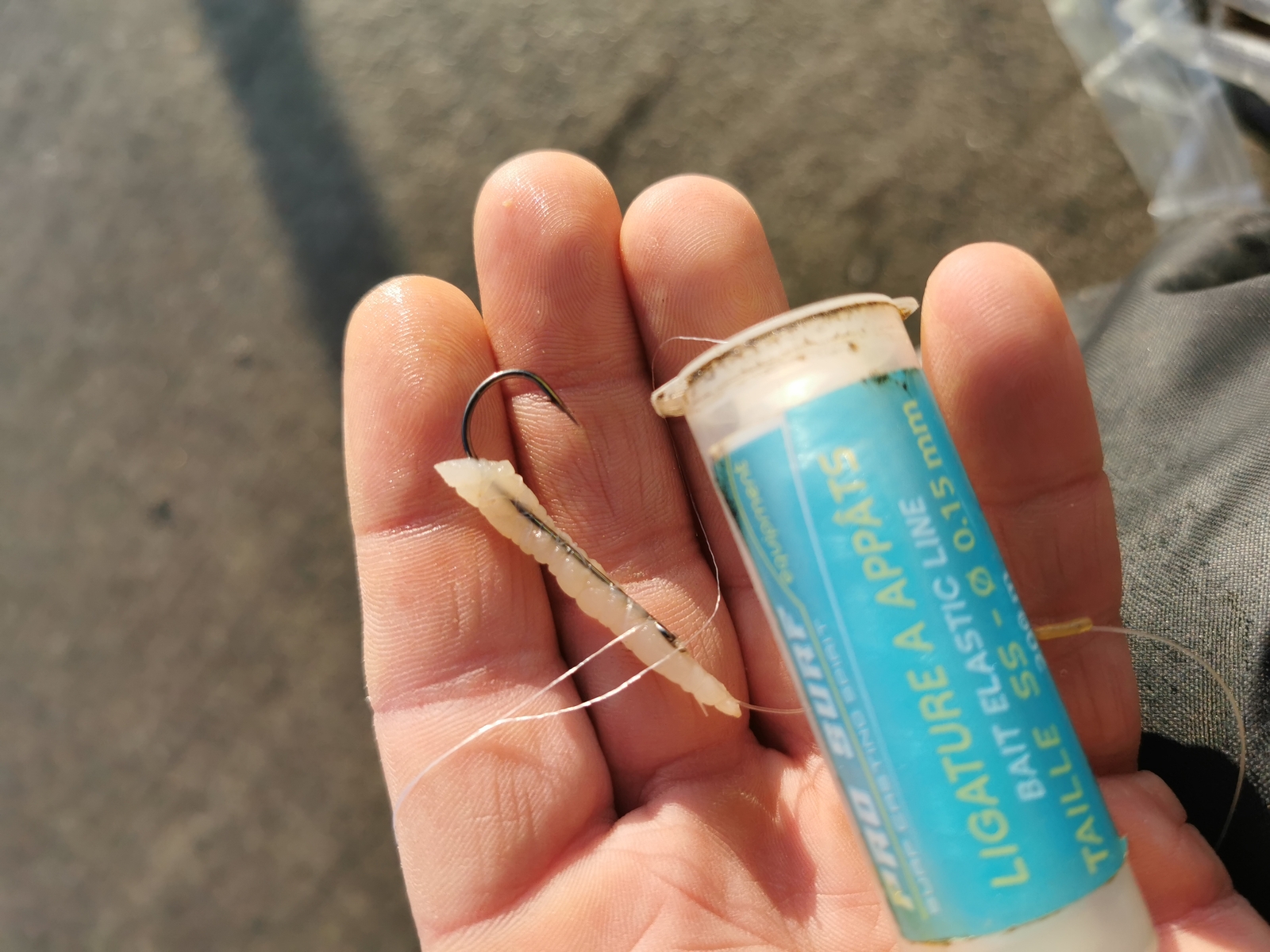 Wer Muscheln anködern will sollte auch Tintenfisch unterwickeln. Als Basis quasi. Wenn die Muschel aufgelöst ist kann man einfach eine neue drüber binden.