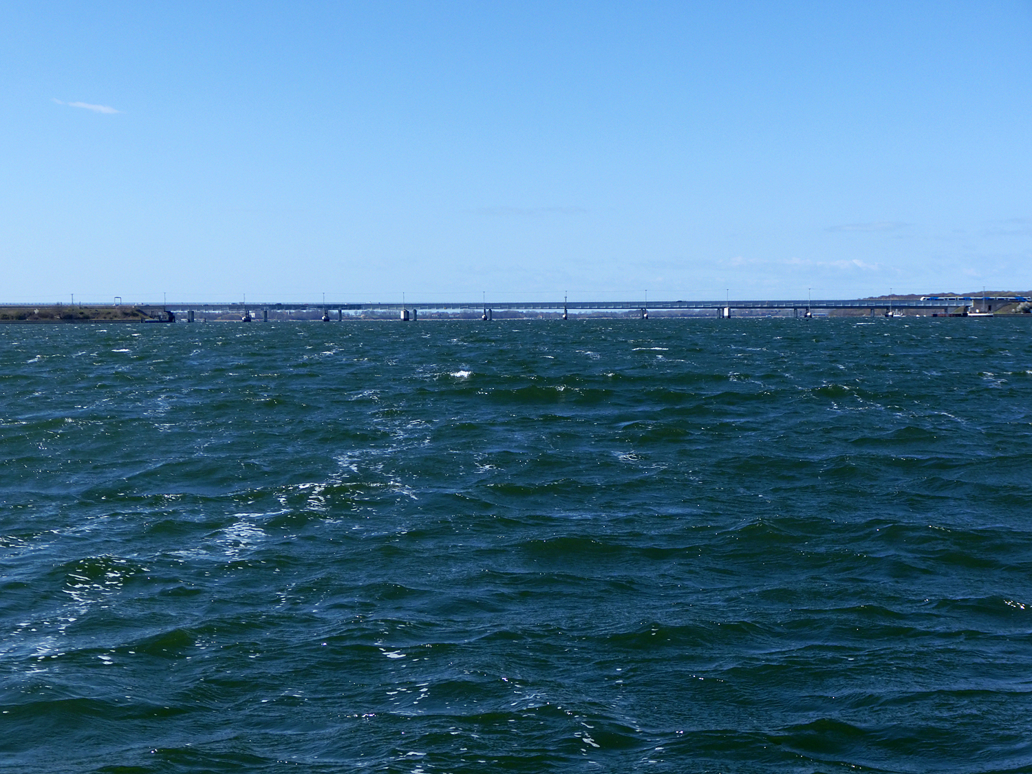 Also rauf auf die Insel und über den alten Damm wieder runter. Das Slippen mit dem neuen Trailer funktionierte gut und so waren wir nach ca. 4 Stunden endlich auf dem Wasser. Die von den Wetterfröschen versprochene Sonne hielt sich etwas zurück und so war es recht frisch auf dem Wasser