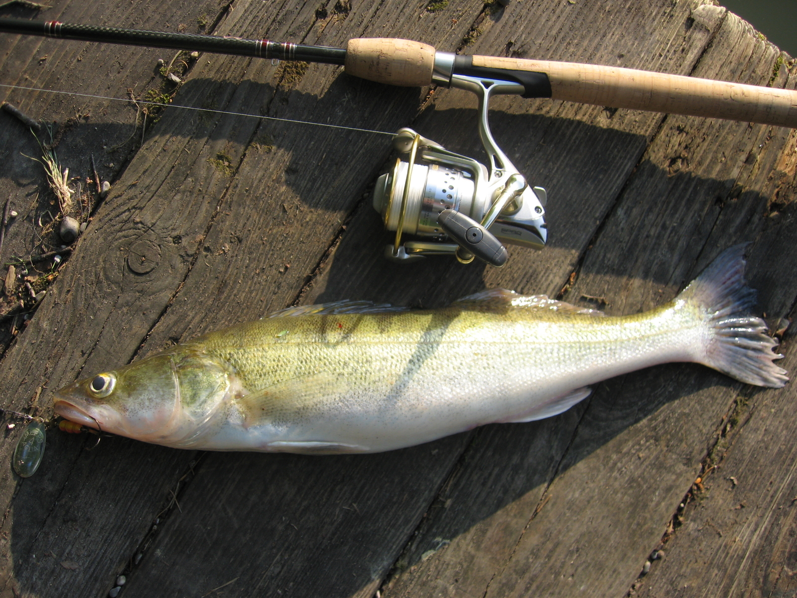 Um so größer meine Freude, als sich der Fisch nach kurzer Gegenwehr zeigte. Ein hübscher Zander von anschließend gemessenen 51 cm zeigte sich an der Oberfläche, der den Drilling leider so unglücklich irgendwo in den Kiemen hängen hatte, dass er bereits beim Landen blutete und ich den schönen Stachelritter zu meinem Bedauern abschlagen musste (Schonmaß bei uns 60 cm). :( Was auch auffiel, war ein etwa 1-Cent-großes Loch auf der rechten Schädelseite des Fisches, was ganz stark nach einer Vogelattacke ausgesehen hat.