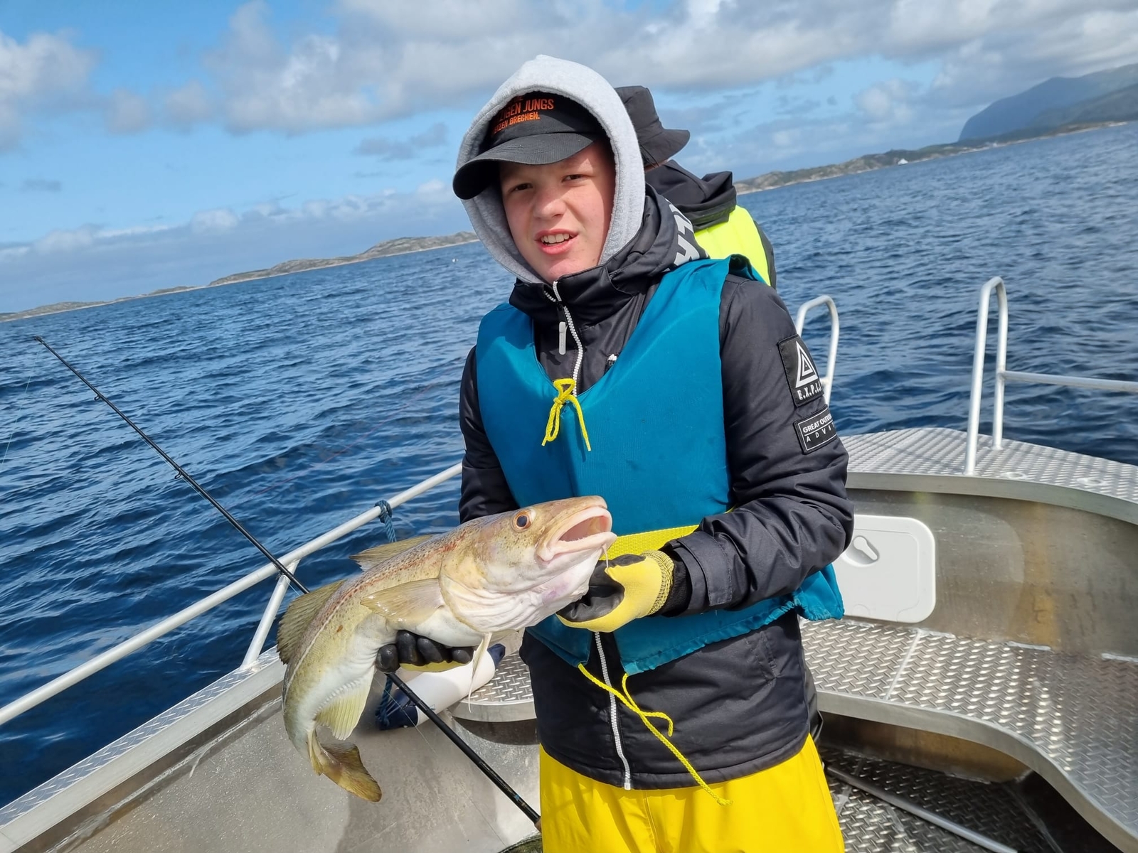 Bei 25 Grad, leicht bedecktem Himmel und ruhiger See sind wir mit dem Boot raus. Da es ja überall 4G auf dem Wasser gibt, googelte ich nach Fangplätzen und Sven und der Junior steuerten drauf los. Ich hatte viel von Smøla gelesen also ging die Reise dort hin. Nach ca. 15 min. Fahrt postierten wir uns zwischen 2 Schären für die erste Drift. Und was soll ich sagen, wir hatten genau die richtige Stelle getroffen. Gleich beim ersten Versuch pumpte ich den "Dorsch des Urlaubs" nach oben mit einem großen Köhler als Beifang.