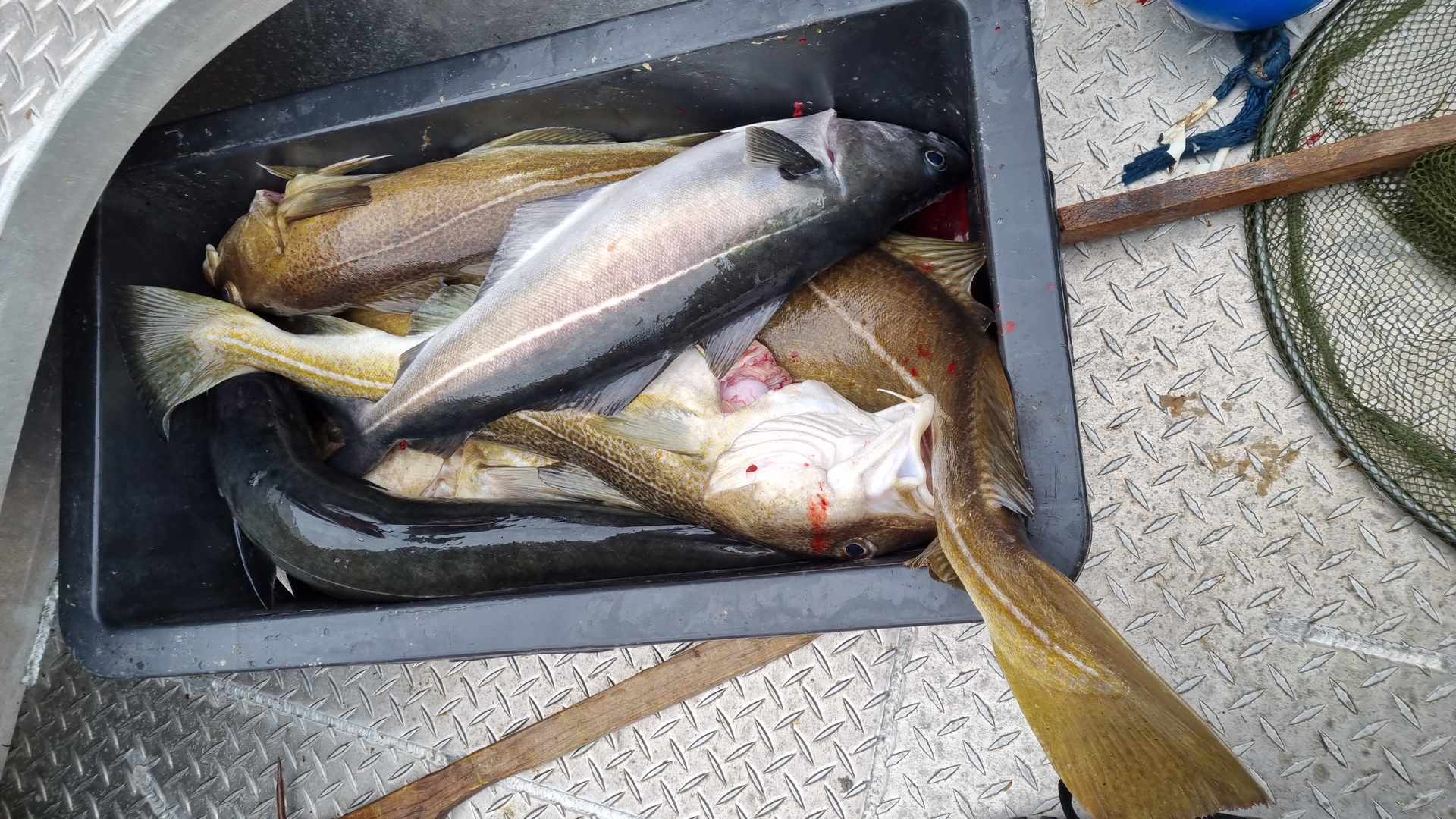 Bei den beiden anderen ruckte es ebenfalls kräftig in der Peitsche. Wir blieben an der Stelle für 3 Stunden und konnten abwechselnd den einen oder anderen Dorsch und Köhler, teilweise im Minutentakt, in unser Boot locken. Wir hatten viel Spaß.