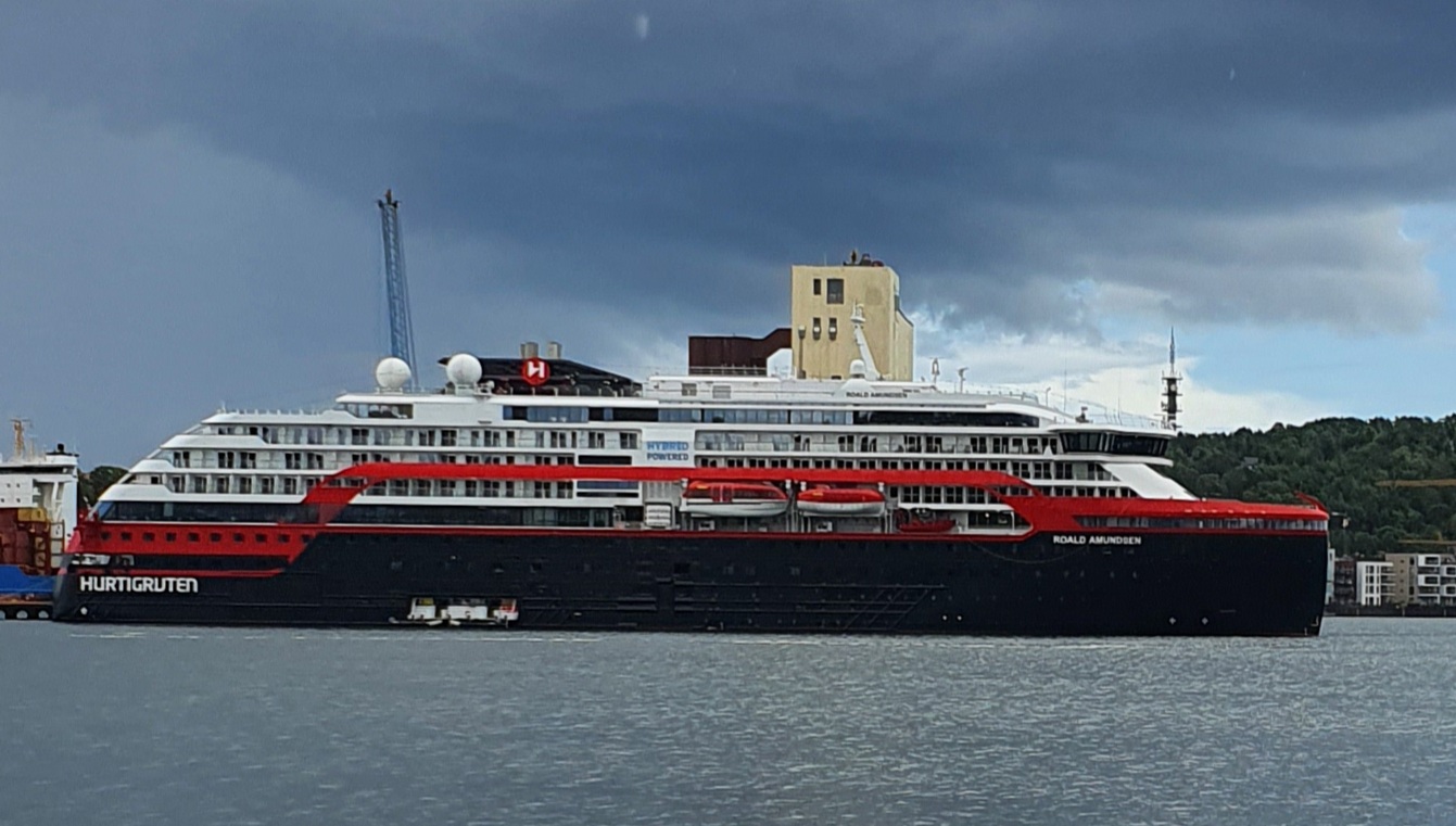 Eine Stunde vor Abfahrt erreichten wir den Terminal. Noch schnell die Smartphones mit der CovPass-App vorzeigen und hinter uns lagen die Grenzübertrittsformalitäten. Gegenüber dem Anleger konnte man die Roald Amundsen bestaunen, das Flaggschiff der Hurtigruten. Sofort setzte wieder Fernweh ein.