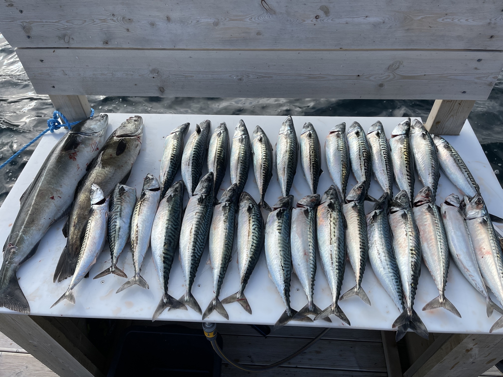 Diese Teile habe ich nicht gezählt. Fakt ist, dass ich am zweiten Angeltag 22 Makrelen verarbeitet und eingefroren habe.
