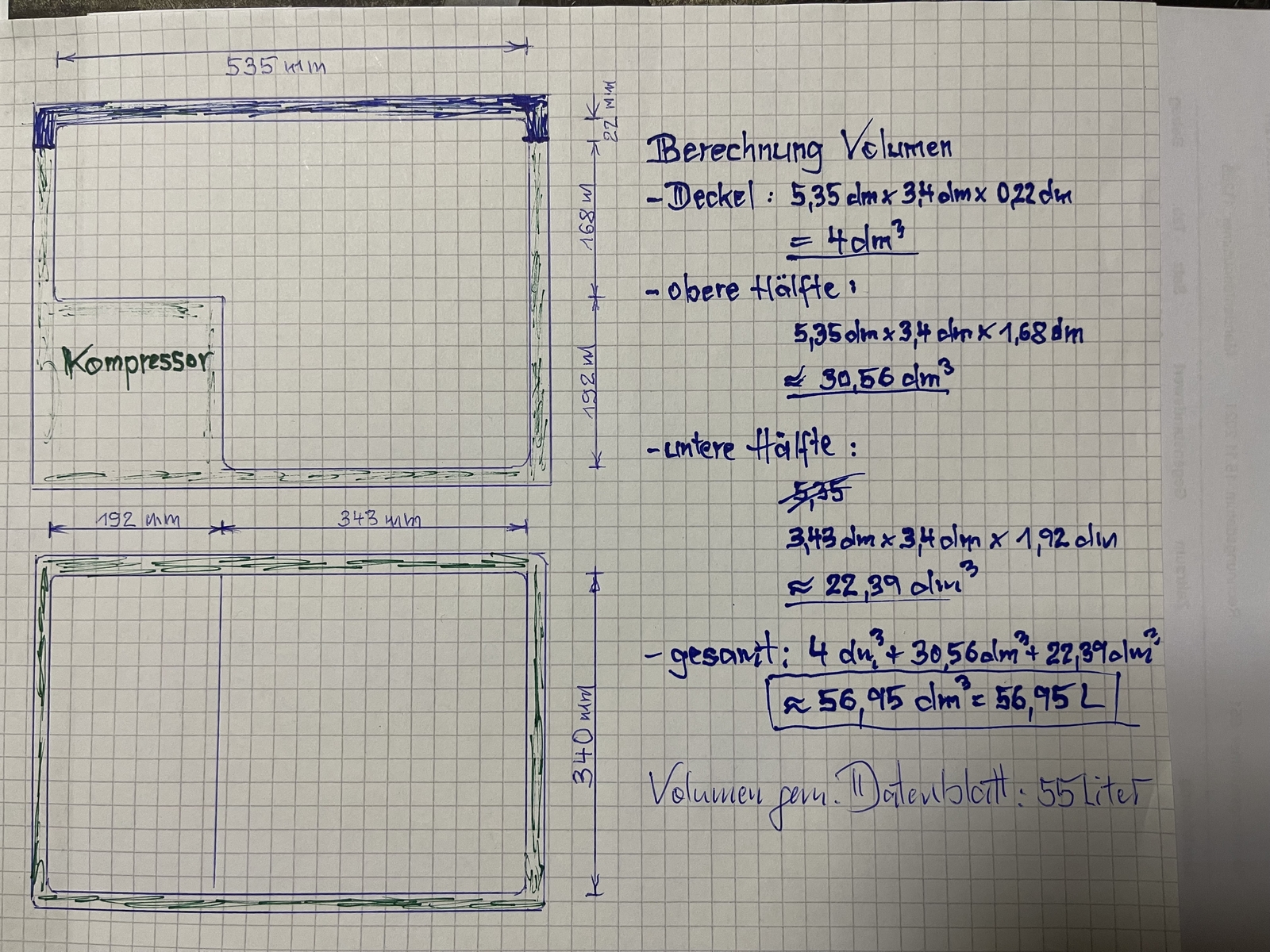 Nachdem ich meine Kiste relativ genau ausgemessen und das Volumen ermittelt habe, bin ich stutzig geworden,