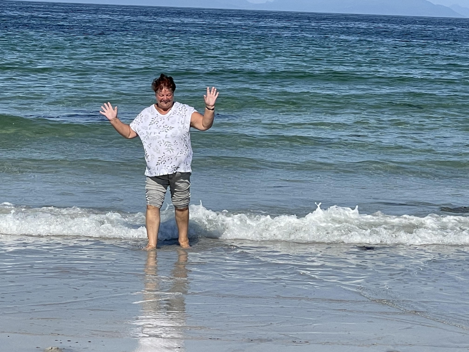 in Richtung BrennaAngekommen in Saupstad musste Ulla erst einmal das Wasser testen. Mir als Weichei blieb nur das Knipsen übrig. Der Strand war super.
