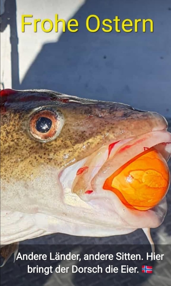 Heute sind wir erst gegen 11.30h raus. Ein paar Seelachse und Dorsche werden gerade filetiert, während wir Frauen uns um das Osteressen kümmern.