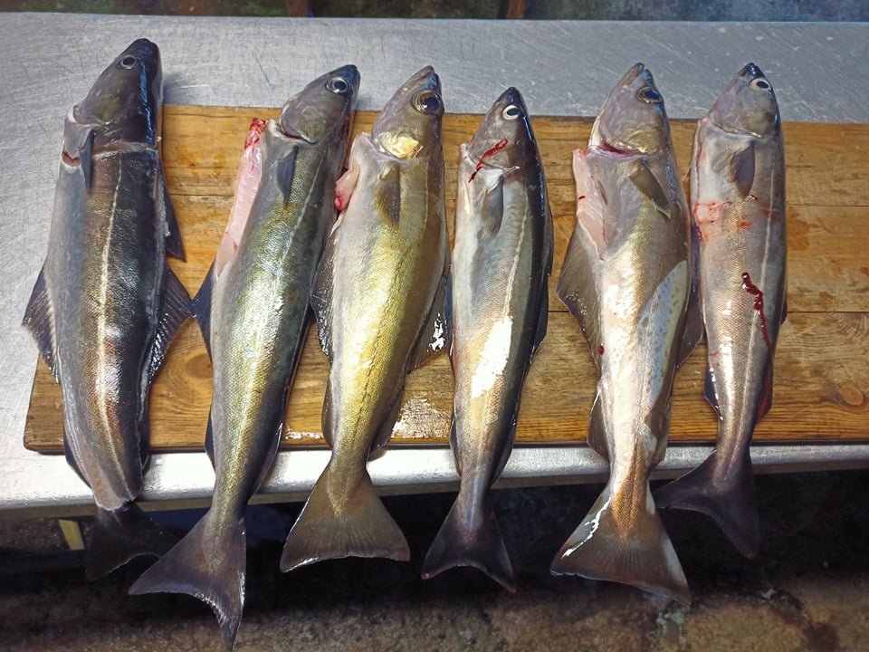 Die Angelei war manchmal recht untypisch. Pollack hat kaum beim Spinnfischen gebissen und stand "Verhältnismäßig" sehr tief, dies ist aber wohl noch den fehlenden Makrelen zuzuschreiben. Er wurde eigentlich hauptsächlich bei Jiggen auf Seelachs gefangen. Ansonsten hatten wir eine doch sehr starke Drift, an die man sich erst einmal gewöhnen muss. Dennoch kam ich wunderbar mit 90 - 120 g Pilker/Jig aus, die ich gute 100m mit der Drift und regelmäßigen Bodenkontakt raustreiben ließ. Hierbei erzielte ich auch die besten Fänge und konnte am besten an den kleineren Seelachsen vorbeiangeln. Eine Multi bzw. Baitcaster ist hier "fast" Pflicht, da die meisten Bisse in der Absinkphase bzw. beim raustreiben kamen.