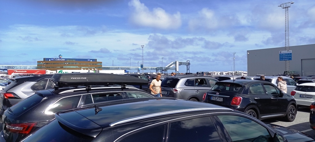 14.7 Hirtshals..Soviel PKWs hab ich noch nie in der Warteschlange bei Colorline gesehen,und weit über die Helfte Norwege Kennzeichen