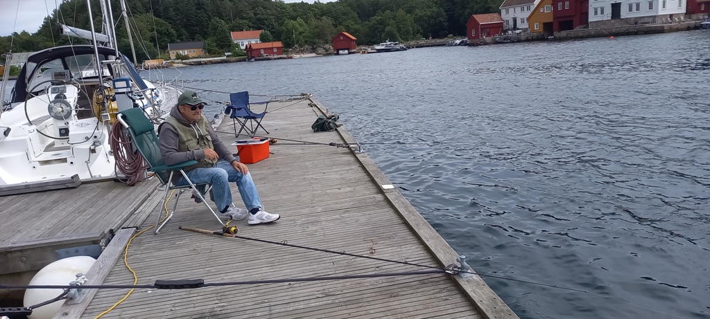 Ein Besuch auf dem Bootssteg von Furuholmen war auch angesagt schon weil ich Linda die ja die Anlage da führt (war Schweizerin) wie immer wenn ich in der Nähe bin 2 Große Stücke von ihrem geliebten echten SchweizerKäse mitbringe.Der Steg war wie eigendlich immer die Garantie für Platte.als wir uns gerade so schön auf die Platten eingelassen hatten..7 Stück in ner guten halben Stunde stand plötzlich ein netter Norweger hinter uns ,das ist mein Liegeplatz und meine Jacht(gute 20m lang)kommt da gerade um die Ecke,die legte doch tatsächlich an der Aussenseite der Steganlage an und somit konnten wir einpacken.