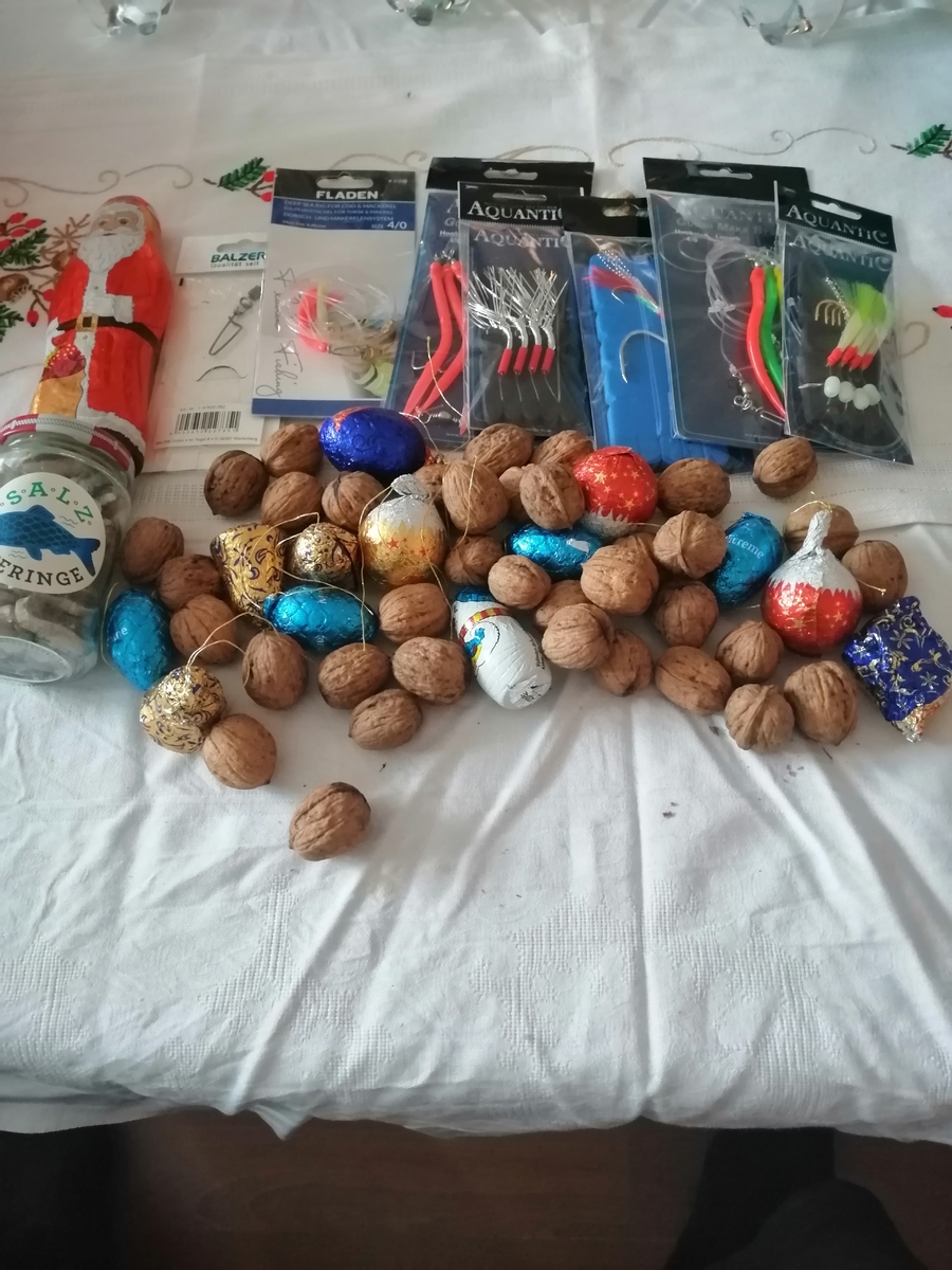 Vielen Dank an den unbekannten Wichtel für das Weihnachtspaket. Wir öffnen nur ein Geschenk am Heiligabend und die anderen am 1. Weihnachtstag. Jetzt kann ich auch endlich im dunkeln Fischen.