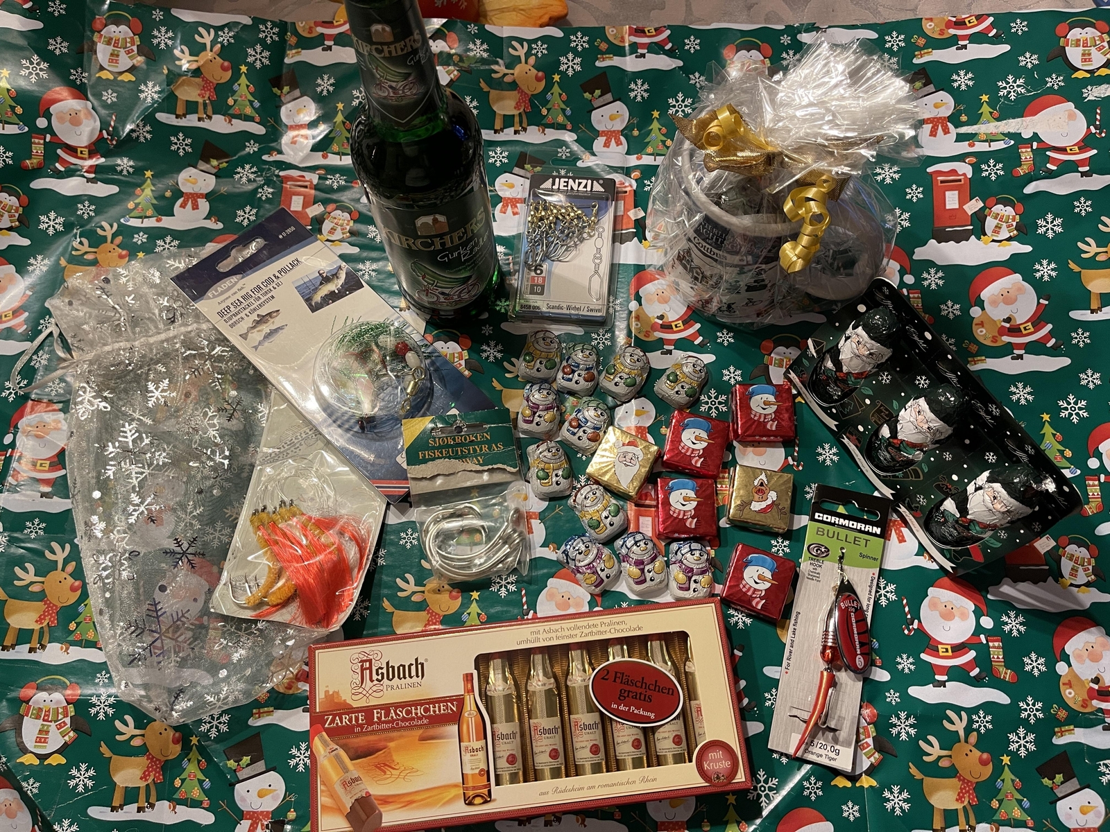 Vielen Dank an den unbekannten Wichtel für das Weihnachtspaket. Wir öffnen nur ein Geschenk am Heiligabend und die anderen am 1. Weihnachtstag. Jetzt kann ich auch endlich im dunkeln Fischen.
