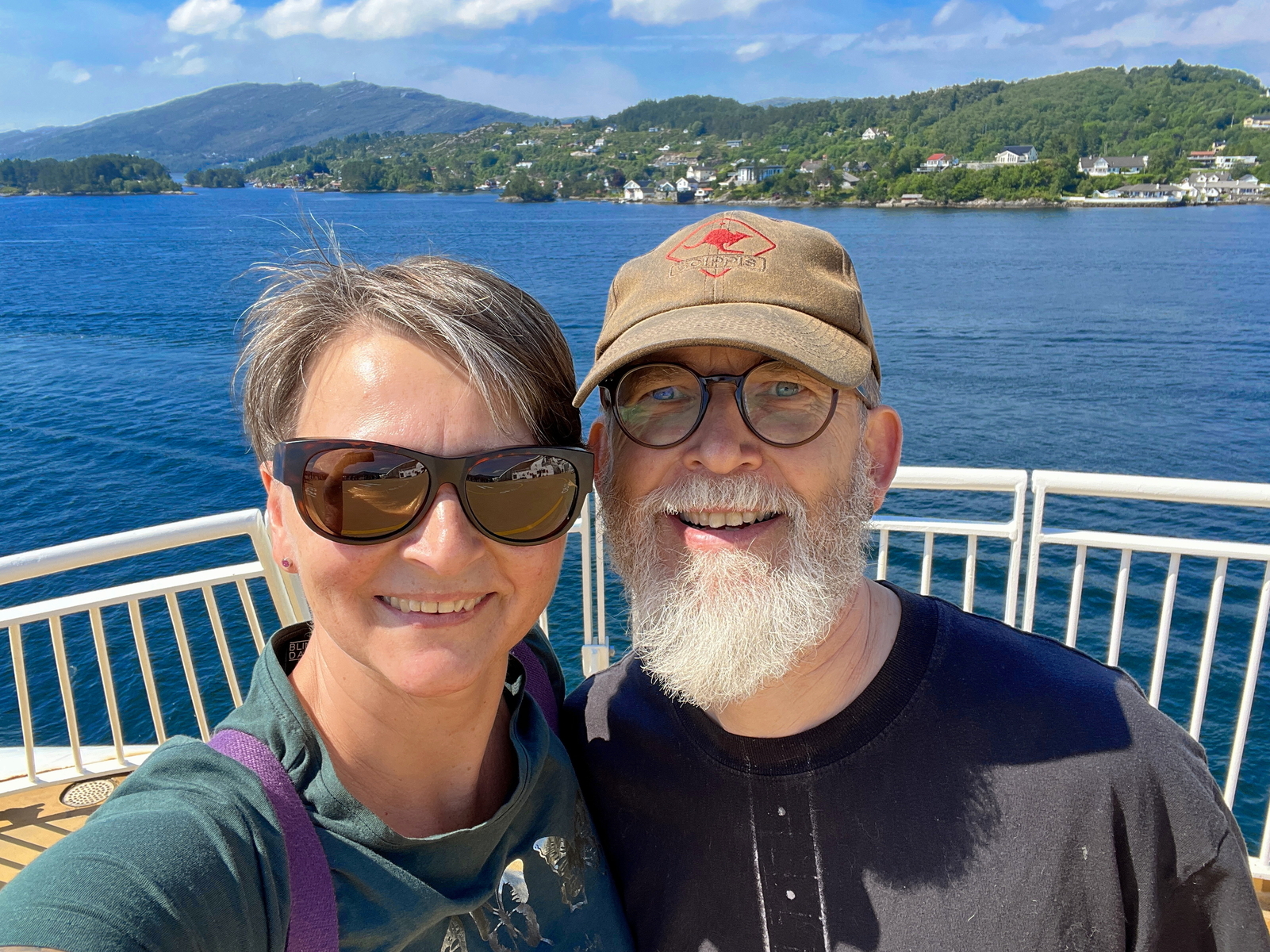 Das letzte Bild war auch noch so eine Geschichte. Noch nie zuvor erlebt. Wie ihr seht war es sehr warm auf der Fähre und der Wind kam von Süden. Plötzlich kam Nebel auf, der Wind kam von Norden und es war brutal kalt auf einmal.