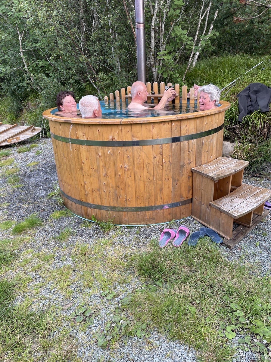 Wasser gefüllt, ordentlich eingeheizt und bei 15 Grad außen und 39 Grad innen das Bad genossen.Um das Badewasser auf Temperatur zu bringen hatten wir in relativ kurzer Zeit einen kompletten Holzsack