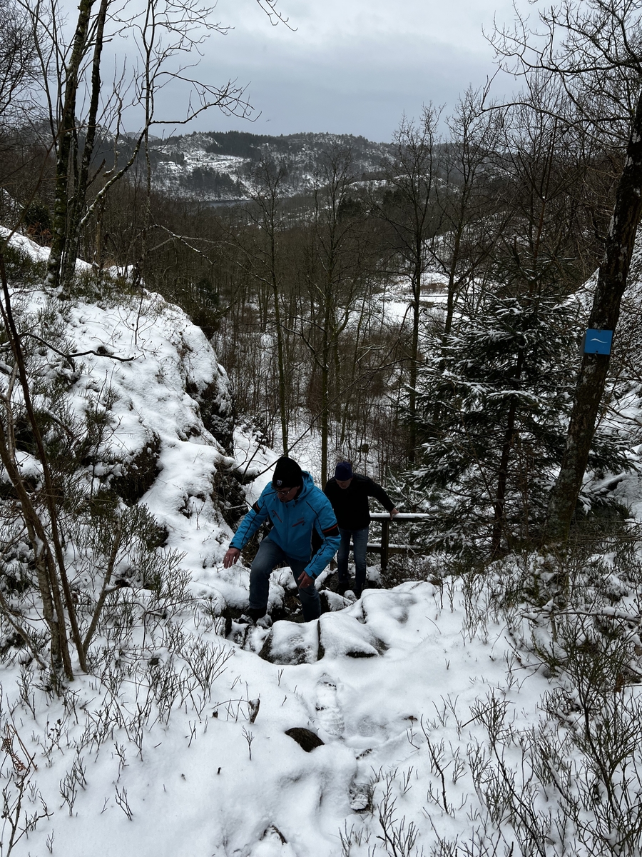 Anschließen wanderten wir hinauf zum Aussichtspunkt über Björnevag und weiter bis zum See Lomtjönna. Der Weg dahin war sehr schön und besonders im Schnee ein Erlebnis. Teilweise flach und steil, über Bäche und Treppen und später wieder bergab zum Ausgangspunkt. Eine wirklich schöne Wanderung, ein wenig anspruchsvoll und mit schönem Ausblick.:klatsch: