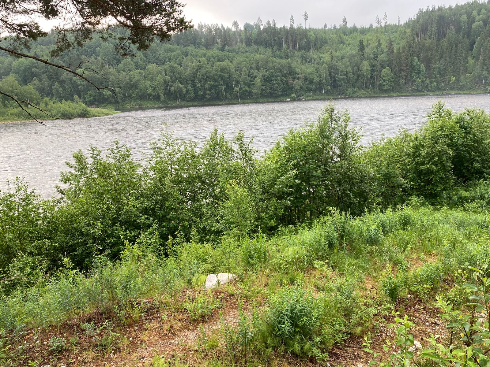 Das hier ist nicht der Afjord, nein, das ist die Glomma, die direkt unterhalb unserer Zwischenübernachtung entlang fließt. Ein ganz ordentlicher Wasserstand dieses Jahr.