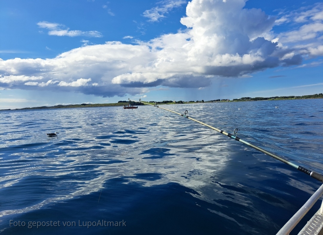 Wir lieben diese Gegend, kurz vor Edøya bei 60-90m Seehechte zu stippen, die Fähre immer im Blick habend
