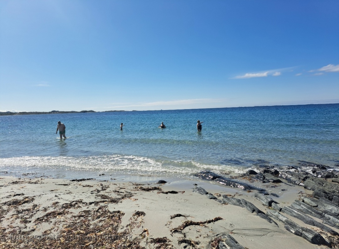 Badestrand liegt rechts hinter coop Leira und heißt Steinviksanden - leider geht der Weg dorthin etwas "querwald" - es kann feucht an die Füsse werden. Man wird aber belohnt für den Aufwand ...