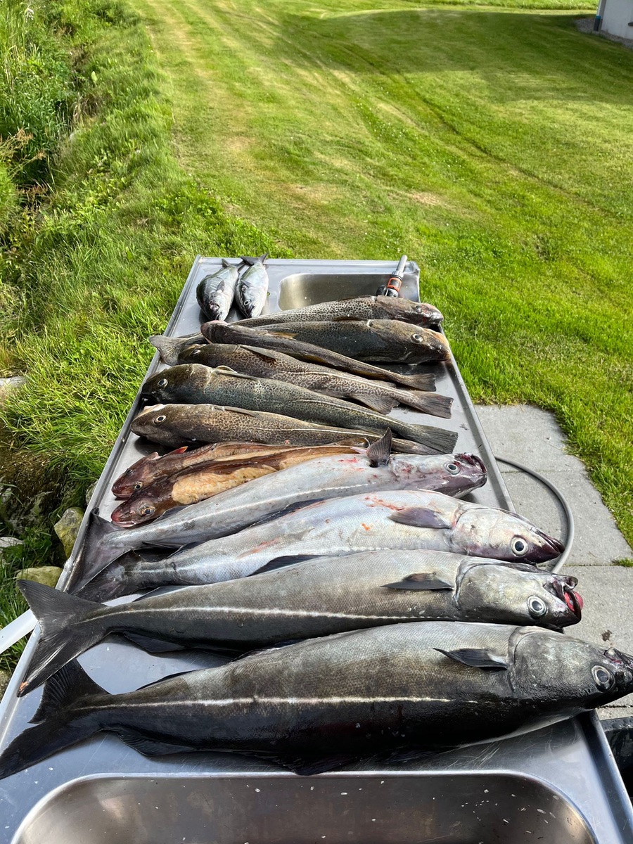 Als die Bisse nachließen, wollten wir am Otroya Ufer noch Leng suchen. Nun ja, einer wollte mitfahren. Danach haben wir es nochmal auf Seelachs zwischen Otroya und Tautra versucht. Über der tiefsten Rinne von rund 180m konnten wir 2 gute Seelachse überlisten. An flacheren Stellen (140m) ging nix mehr ans Band…