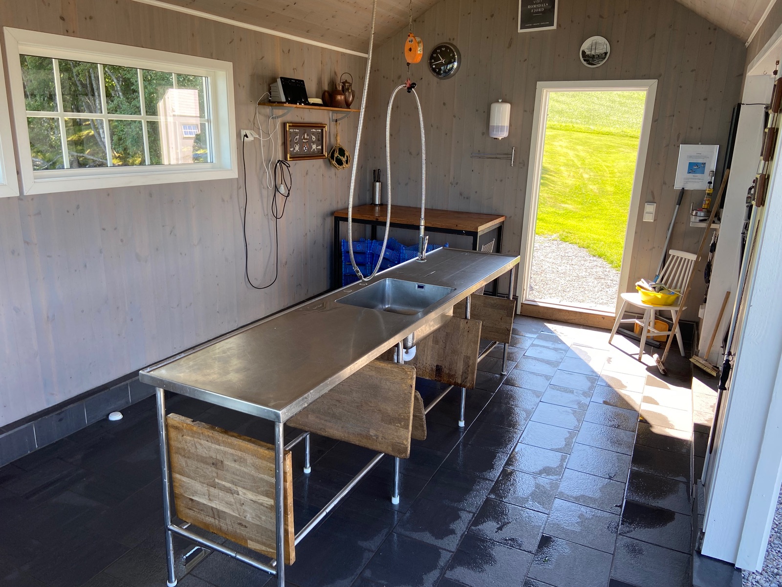 Also der neue Flug wurde bestätigt (Sonntag, 14:00h) ab Molde. Das bedeutet wir durften heute noch mal umziehen für eine Nacht ins kleine Haus Stabben am Hafen. Wetter ist heute sommerlich, blauer Himmel und heute Morgen keine Wellen, jetzt nur leichte. Morgen soll es genauso sein.