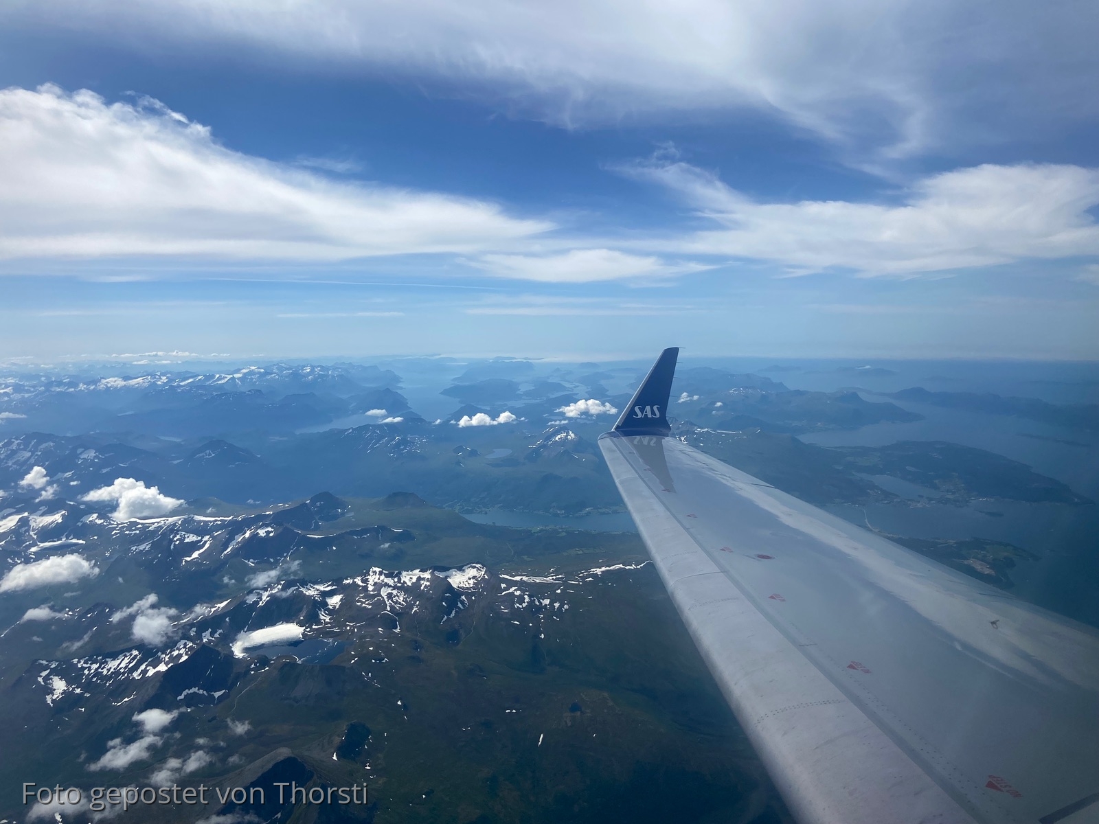 Die Flüge waren einwandfrei, über Norwegen tolles Wetter, leichte Wolken und schneebedeckte Bergspitzen. Traumhaft. Ich wäre am liebsten umgekehrt…