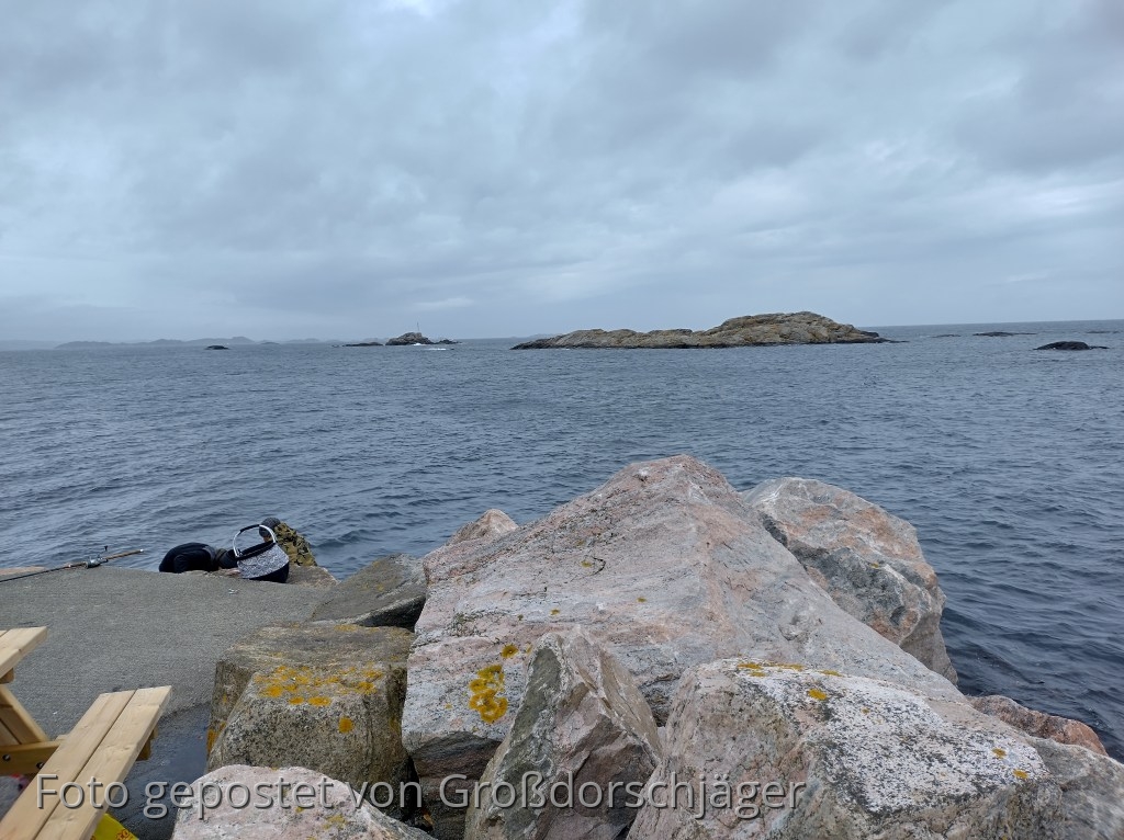 Der sehr gute norwegische Wetterdienst YR.no sagte für heute ein Windfenster voraus. Von 8 - 13 Uhr sollten es nur 4 bft sein. Als der Dauerregen gegen 9 Uhr aufhörte, sind wir rausgefahren. Von den Wellen ging es, nur etwa 1m, Dünung teilweise 2m. Drift war auch gerade noch machbar, etwa 2kn. Aaaber: kein einziger blöder Fisch, nix, gar nix! Die halbe Bucht abgesucht, 4 Zupferchen... auch 8 weitere Boote waren draußen, auch da absolut nichts zählbares.
