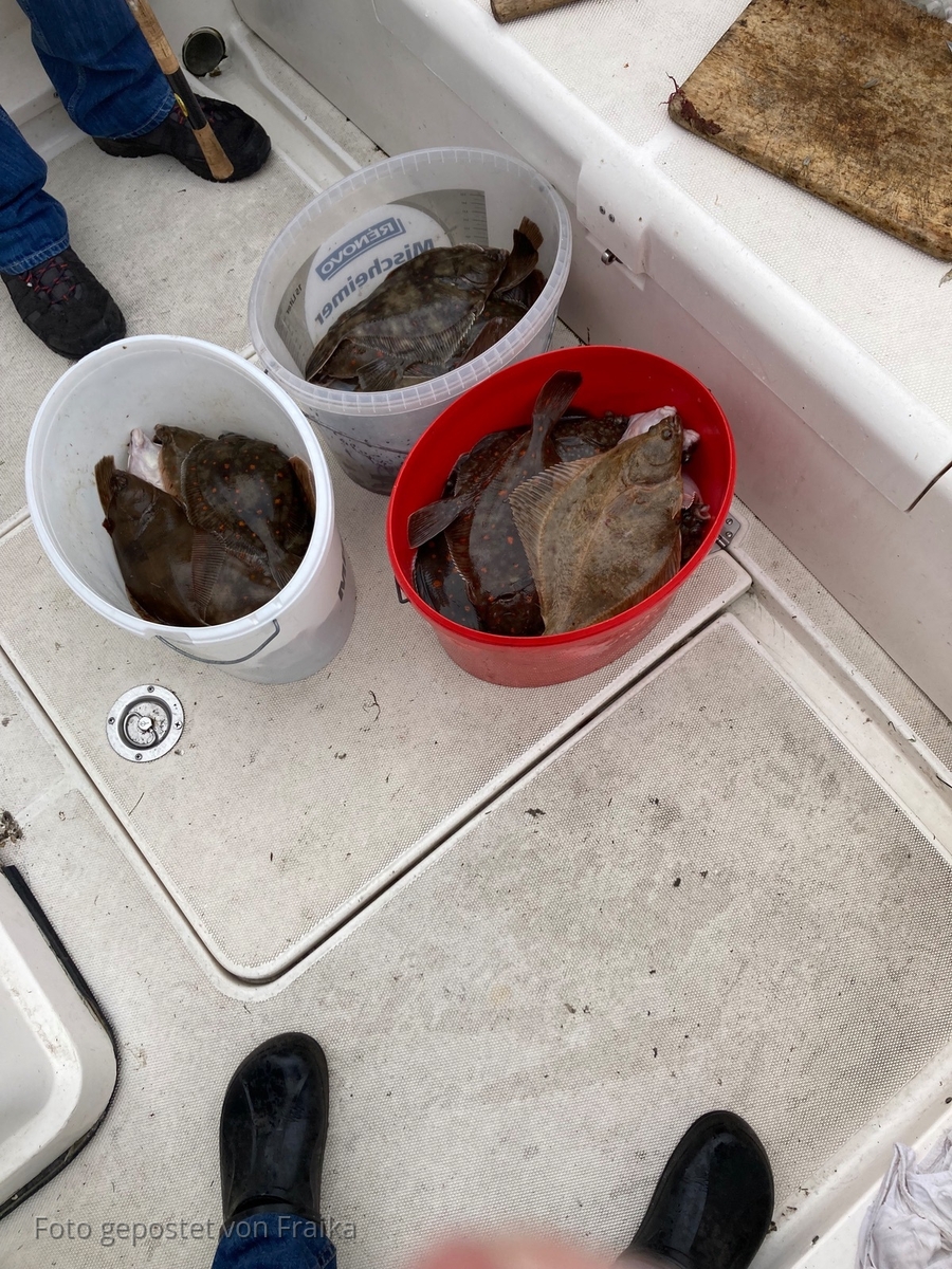So konnten wir an diesem Tag, zu dritt, 110 Schollen und Flundern verhaften.