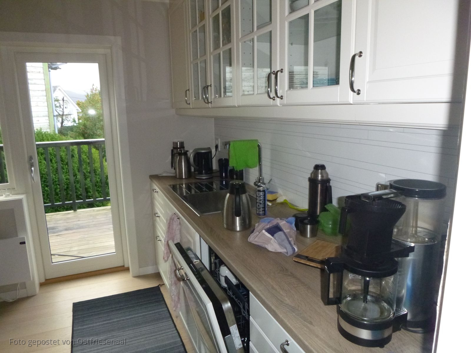 Toll war die gut eingerichtete und auch große Küche. Diese bot nicht nur Platz für alles mögliche an Nahrungsmitteln, sondern es mangelte auch an keinem Kochutensil. Das Wohnzimmer war ebenfalls schön eingerichtet sowie sehr gemütlich und im Esszimmer war der große Tisch perfekt für uns 8 Leutchen. Außerdem stand dort noch ein Schrank, in dem wir unser Knabberkram einlagerten und in dem auch Gläser für den abendlichen Umtrunk zu finden sind.