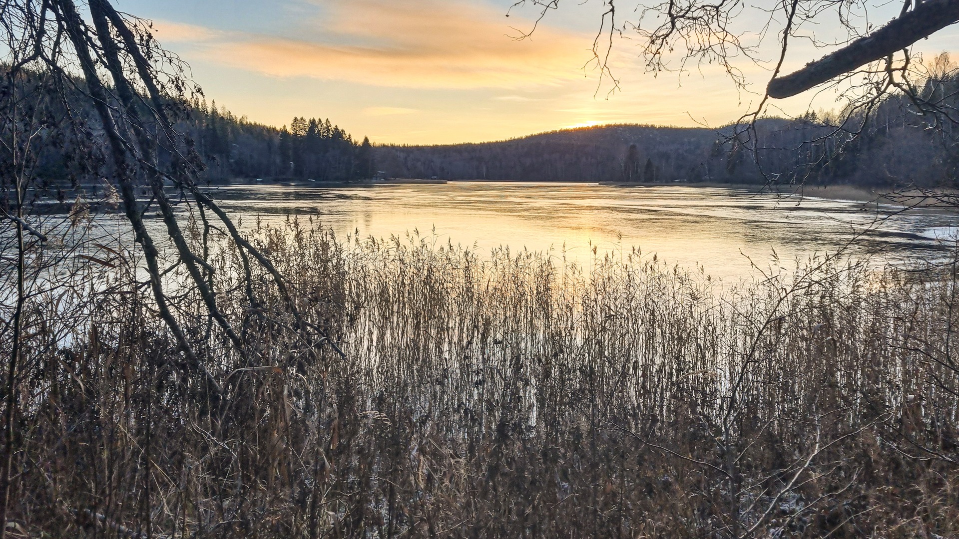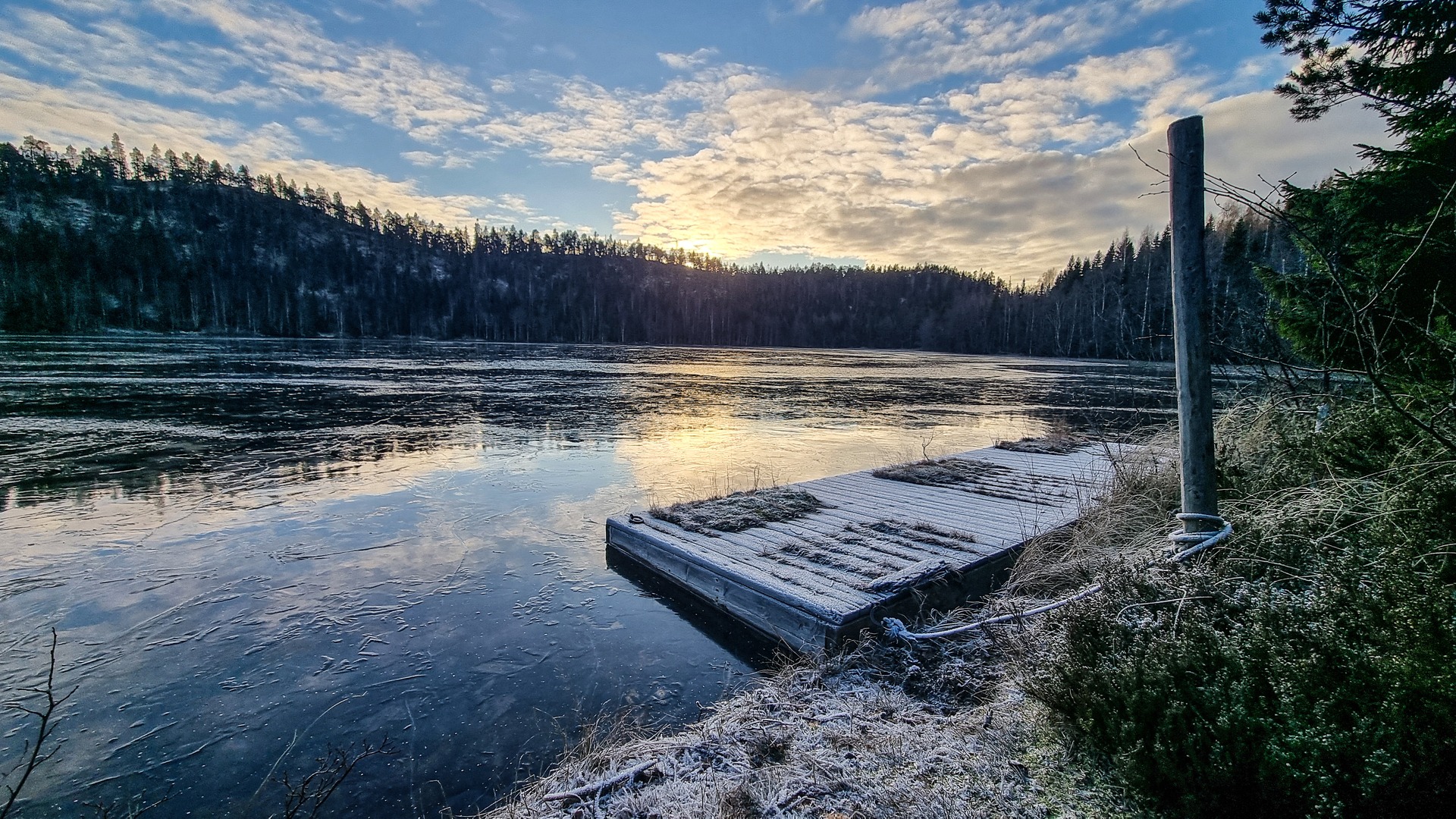 Ein winterliche See im Wald