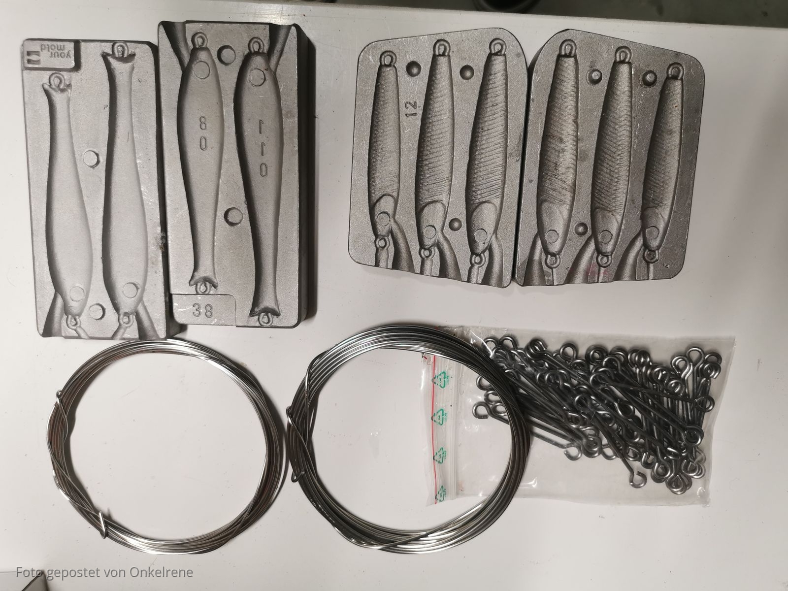 Ich verkaufe zwei kaum benutzte Pilkergussformen, bzw Zockerformen. Ich habe die Formen ein paar mal genutzt, aber seit dem liegen sie nur bei mir rum. Dazu gehörten Ösen und 2 Rollen VA Draht. Ich Preisvorschlag sind 30€ inkl Fracht ich hoffe jemand hat Spass daran. Als Zugabe packe ich noch ca 1-2 kg Blei, bzw Letter dazu.