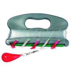Eine Harpe ist eine Handangel. Nur die man für dünnes Geld kaufen kann, hat auch eine recht dünne Schnur. (Gut für die Hände) Ich habe meine alle umgebaut. Da ist jetzt 100 m 80-er Sehne drauf. Am Ende ein Wirbel. Danach kommen 2 Makrelenvorfächer der groben Art drauf und am Ende hängt auch mit einem Wirbel ein Blei dran. Das Blei hab ich in 3 Varianten. 200, 250 und 300g Wenn man gegen die Strömung fährt, muss es schon mal schwerer sein.
