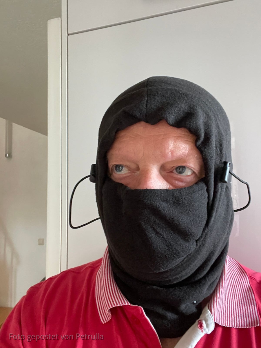 - 2 Kopfüberzieher aus Baumwolle zur Abwehr eiskalter Winde aus dem Norden (hält super warm, sieht aber kriminell aus)