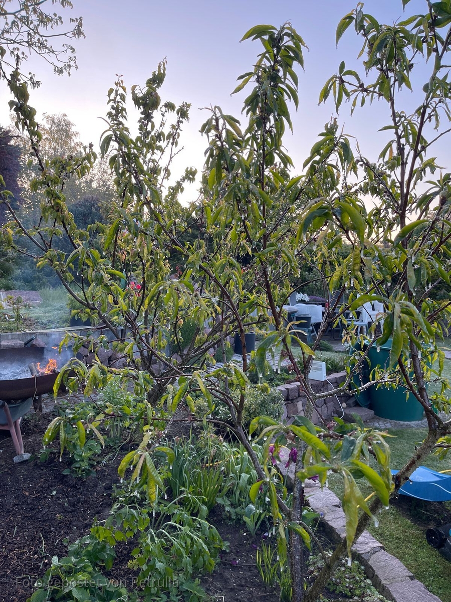 noch etwa 200 Pfirsiche von Knallerbsen- bis Kirschgröße am Baum.