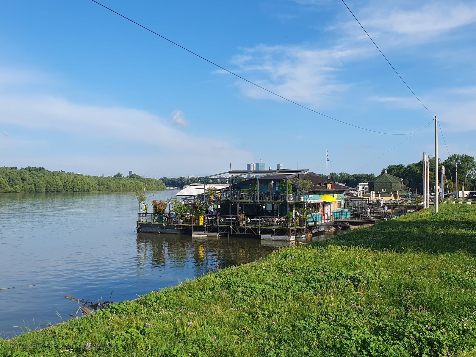 Blick auf die "Veliko Ratno Ostrvo" - ab hier reihte sich ein Restaurantschiff an das andere (rechts Stari šlep), mit sehr gutem Essen zu sehr erschwinglichen Preisen.