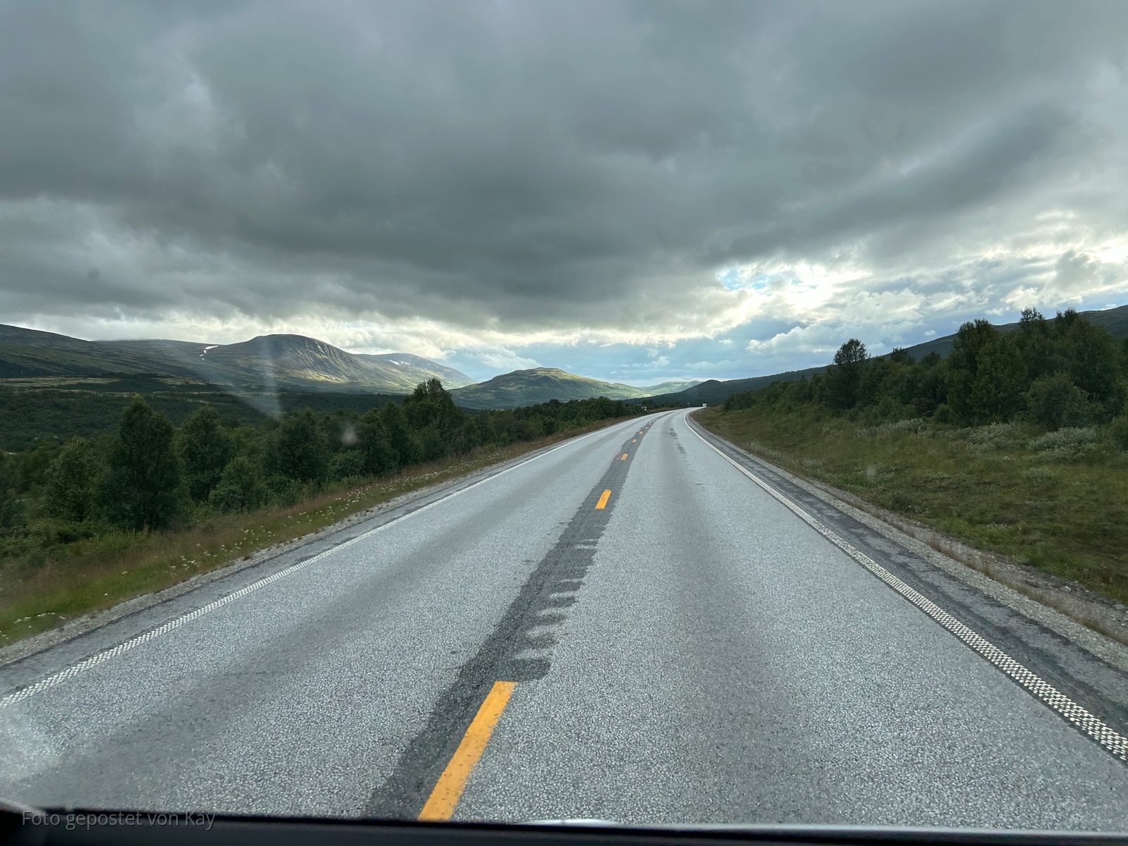 Wir wollten eigentlich oben im Dovrefjell übernachten, wurden aber von einer Norwegerin mit abschreitenden Schritten darauf hingewiesen, dass wir nicht 4 Meter von ihrem Wohnmobil entfernt stehen. Da uns die Plätze aber eh nicht so zugesagt haben, Aussicht in die Weite war durchaus nett, sind wir dann doch noch bis hierher gefahren.