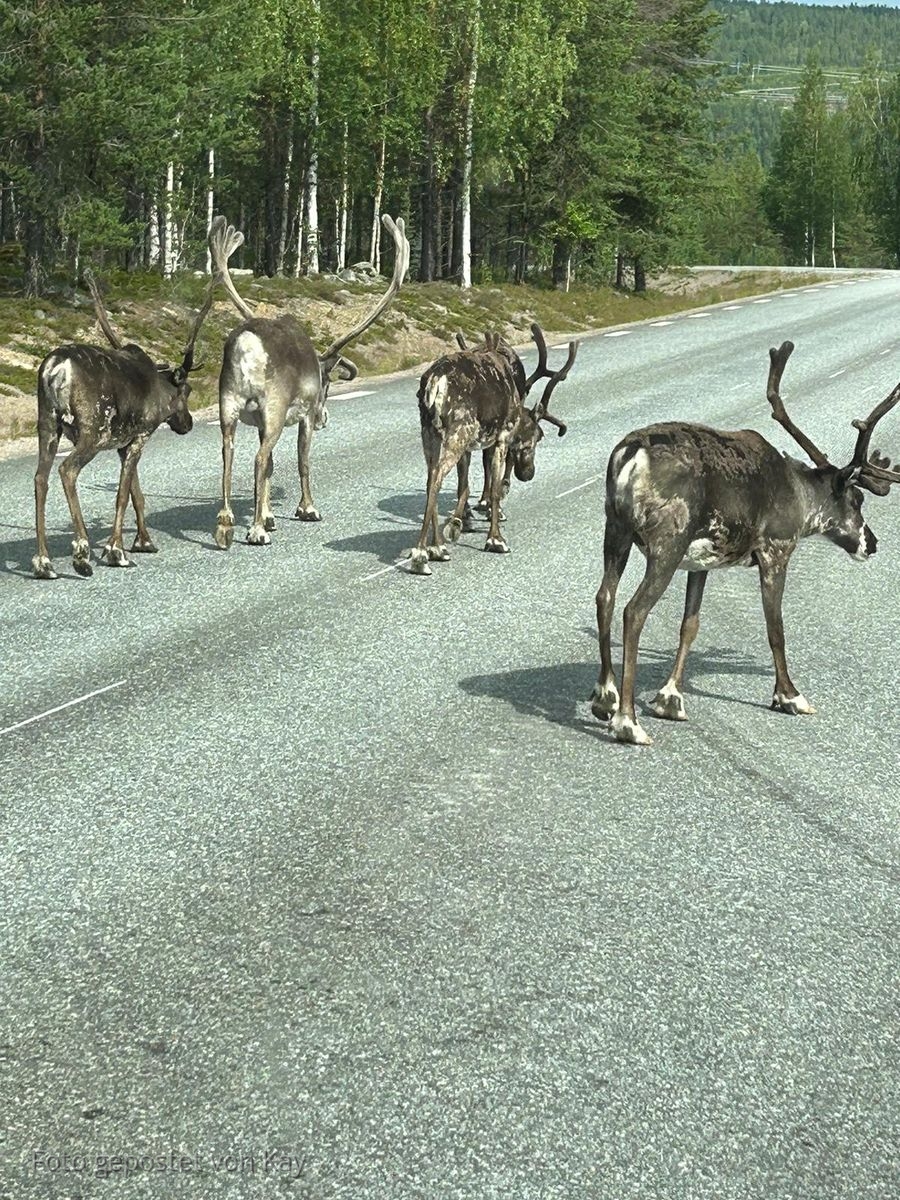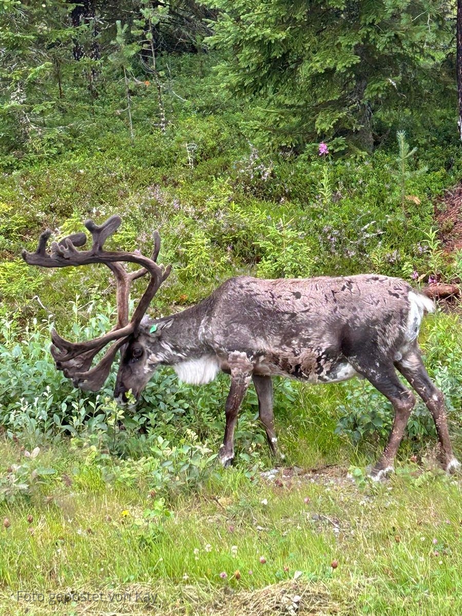 In Arvidsjaur heute morgen gegen 10 Uhr gestartet, haben wir nur wenige Minuten später auf der E45 den ersten "Esel" mit Geweih getroffen.