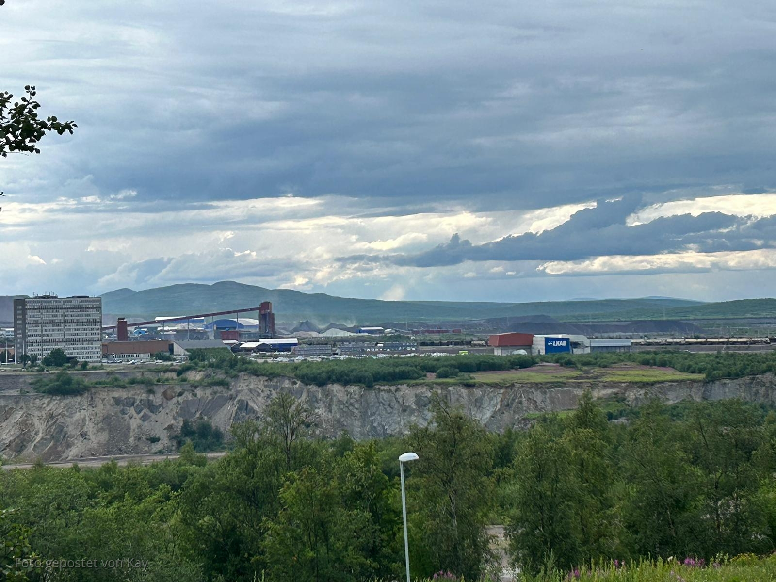 Kurz vor Kiruna waren wir an der ältesten Kirche Lapplands. Gebaut 1607/1608 und restlos fertiggestellt 1785. Daneben war mal wieder ein Freiluftmuseum mit Souvenirshop und uriger Gastronomie. Ich hätte mir gerne das Museum abgeschaut, fand aber 25 Euro pro Person absolut überzogen, für das was man von da aus schon sehen konnte. Ebenfalls das ICE-Hotel ein paar Kilometer weiter, die wollten mehr als 30 Euro pro Person als Eintritt haben... ich bin echt nicht geizig...fand das aber auch zu teuer und so sind wir nach Kiruna reingefahren. Ein Mix aus hochmodernem, noch nicht ganz fertiggestelltem Außenbezirk, und älterem landestypischem Innenstadtbereich. Der Bergbau ist dort alles bestimmend und nicht zu übersehen.