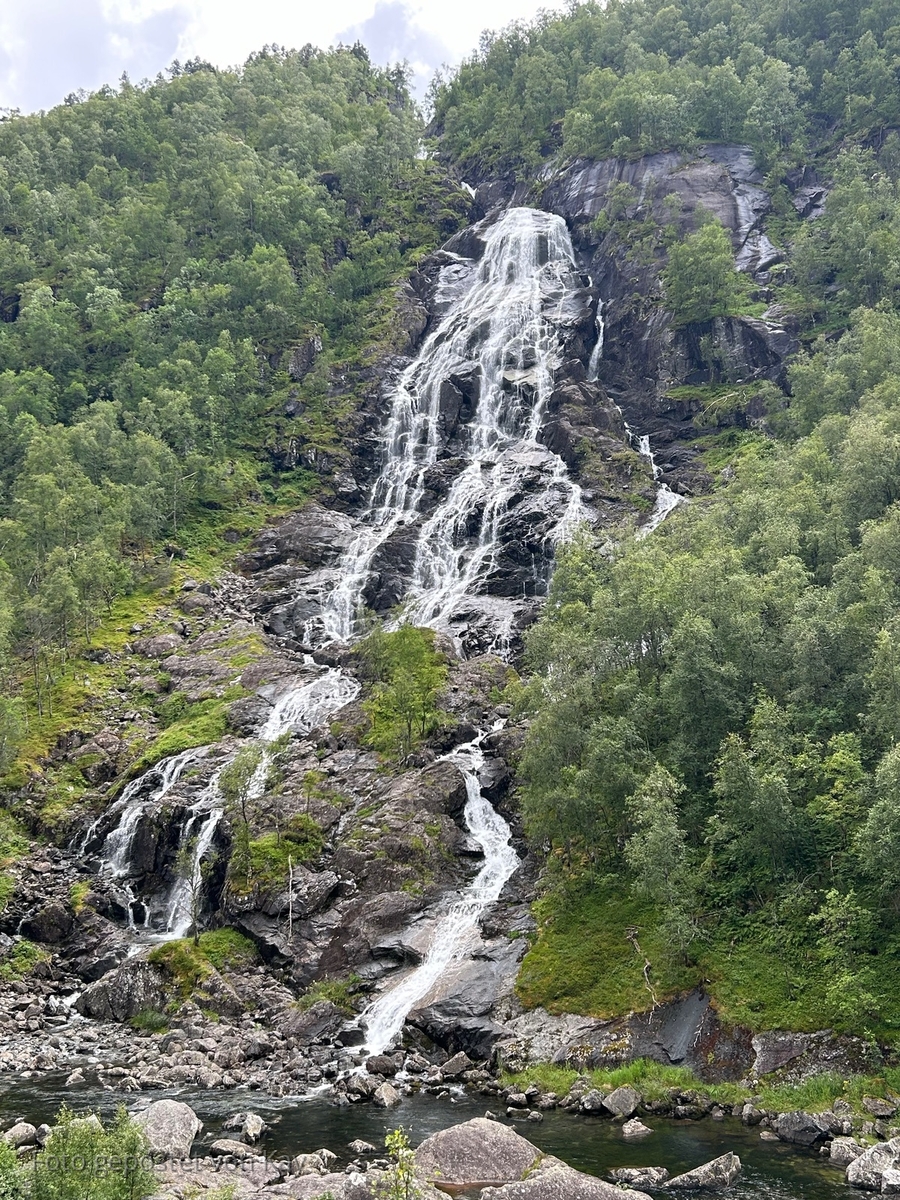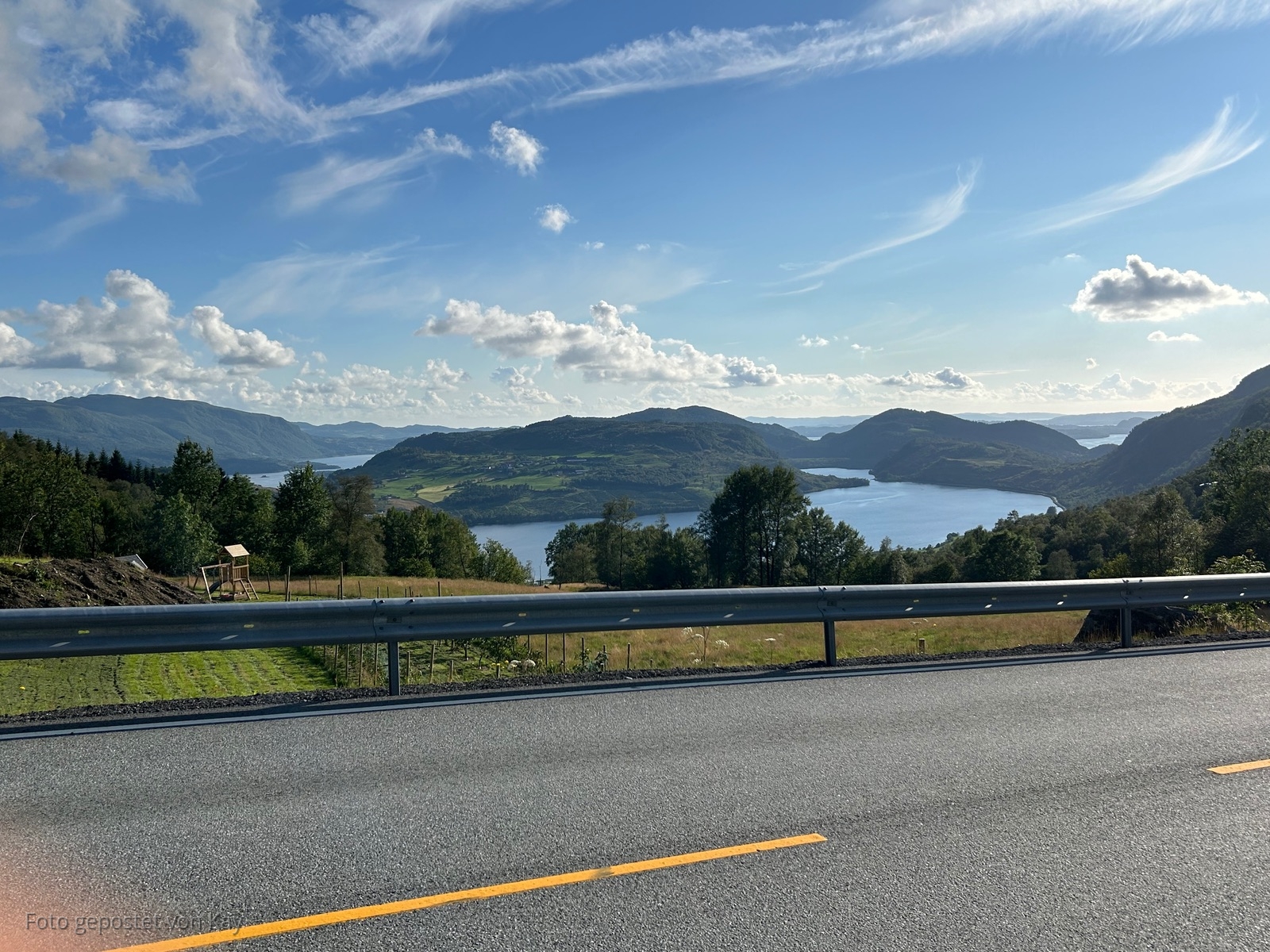 Zurück über Odda und Røldal ging es bis zum Schluss die E13, den sogenannten Ryfylkevegen, entlang. Sehr schöne Strecke, kannte ich bisher auch noch gar nicht. Wir sind an einem kleinen Wasserfall vorbeigekommen.
