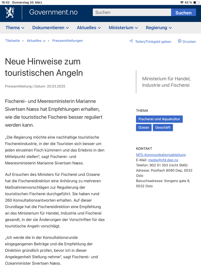 Wenn Berufsfischer den Skrei in Mengen fangen, bevor er abgelaicht hat, wenn mit Schleppnetzen der Gewässergrund zerstört wird, wenn durch Lachszucht Fjorde verschmutzt werden, hilft die zur Debatte stehende Anglerquote vo 10kg den Fischen herzlich wenig.